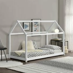 Cama Infantil Netstal Con Colchón Ortopédico – Forma De Casa – Pino 80 X 160 Cm – Natural [en.casa]