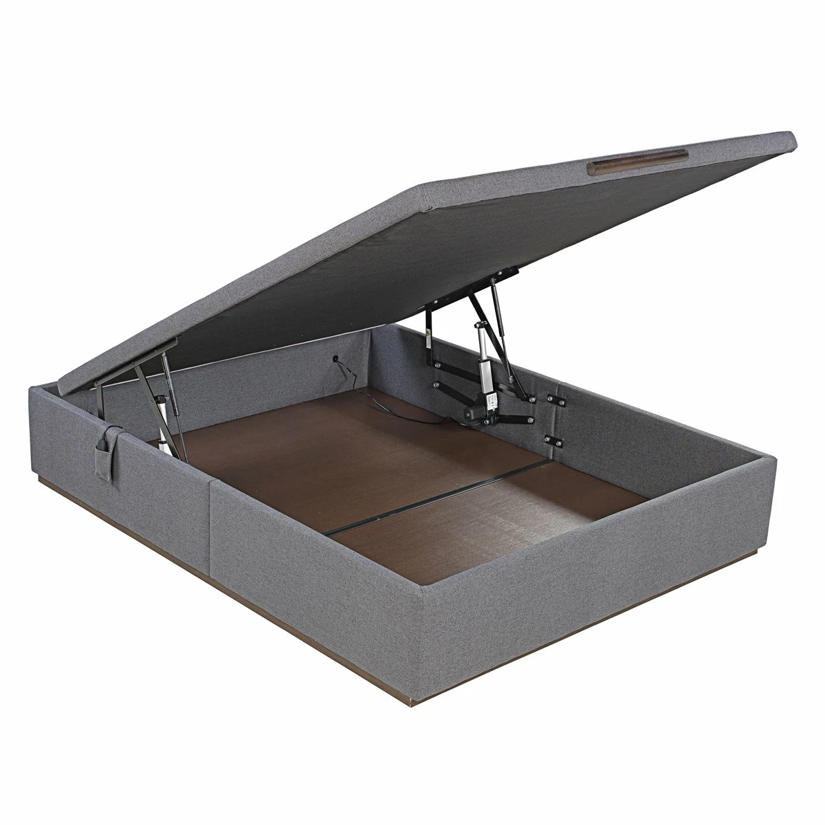 Estructura interior metálica de máxima calidad gracias a unnovedoso acabado textil. La tapa transpirable de máxima durabilidad Base AirSystem (B.A.S. ha sido fabricada para facilitar una ventilación y aireaciónóptima del equipo de descanso. Tiene Double Support (D.S., que es laincorporación de un doble soporte de sustentación que, además de aumentar laresistencia y durabilidad de la propia base, garantiza un apoyo perfecto decualquier tipo de colchón incrementando su vida útil. También lleva un tiradorfuncional y práctico de madera wengué con identificación de marca, un zócalo demadera wengué a juego con el tirador y un arquillo que sujeta el colchón.