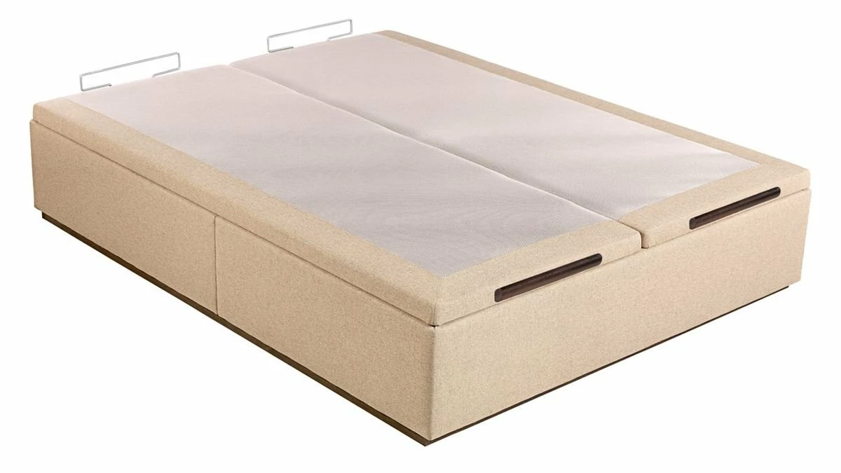 Estructura interior metálica de máxima calidad gracias a unnovedoso acabado textil. Las tapas transpirables de máxima durabilidad Base AirSystem (B.A.S. han sido fabricadas para facilitar una ventilación y aireaciónóptima del equipo de descanso. Tiene Double Support (D.S., que es laincorporación de un doble soporte de sustentación que, además de aumentar laresistencia y durabilidad de la propia base, garantiza un apoyo perfecto de cualquiertipo de colchón incrementando su vida útil. También lleva un tirador funcionaly práctico de madera wengué con identificación de marca, un zócalo de maderawengué a juego con el tirador y dos arquillos que sujetan el colchón.