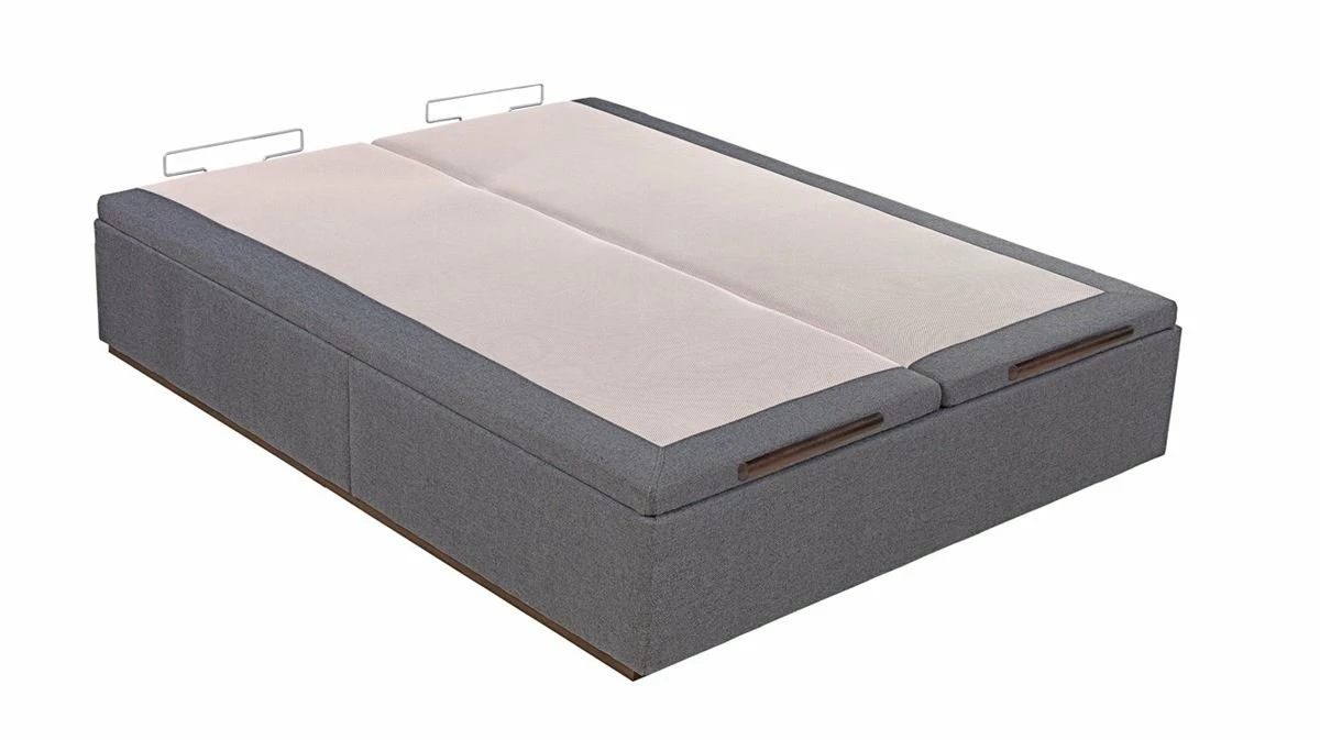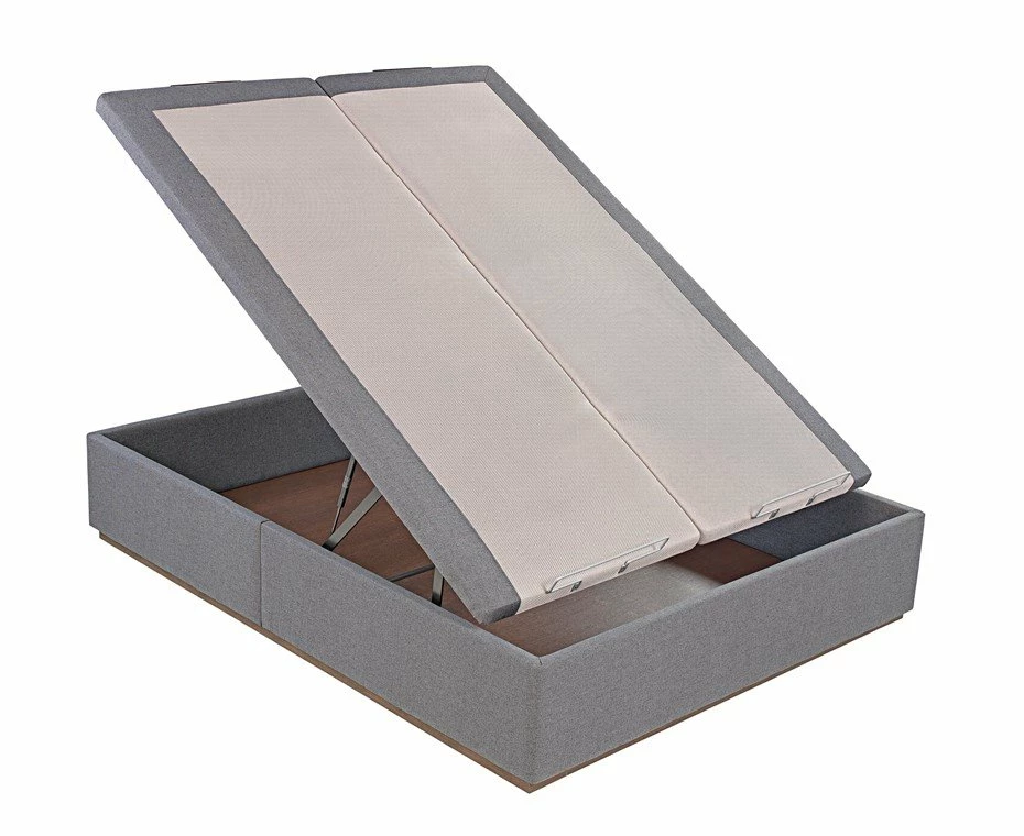 Estructura interior metálica de máxima calidad gracias a unnovedoso acabado textil. Las tapas transpirables de máxima durabilidad Base AirSystem (B.A.S. han sido fabricadas para facilitar una ventilación y aireaciónóptima del equipo de descanso. Tiene Double Support (D.S., que es laincorporación de un doble soporte de sustentación que, además de aumentar laresistencia y durabilidad de la propia base, garantiza un apoyo perfecto de cualquiertipo de colchón incrementando su vida útil. También lleva un tirador funcionaly práctico de madera wengué con identificación de marca, un zócalo de maderawengué a juego con el tirador y dos arquillos que sujetan el colchón.