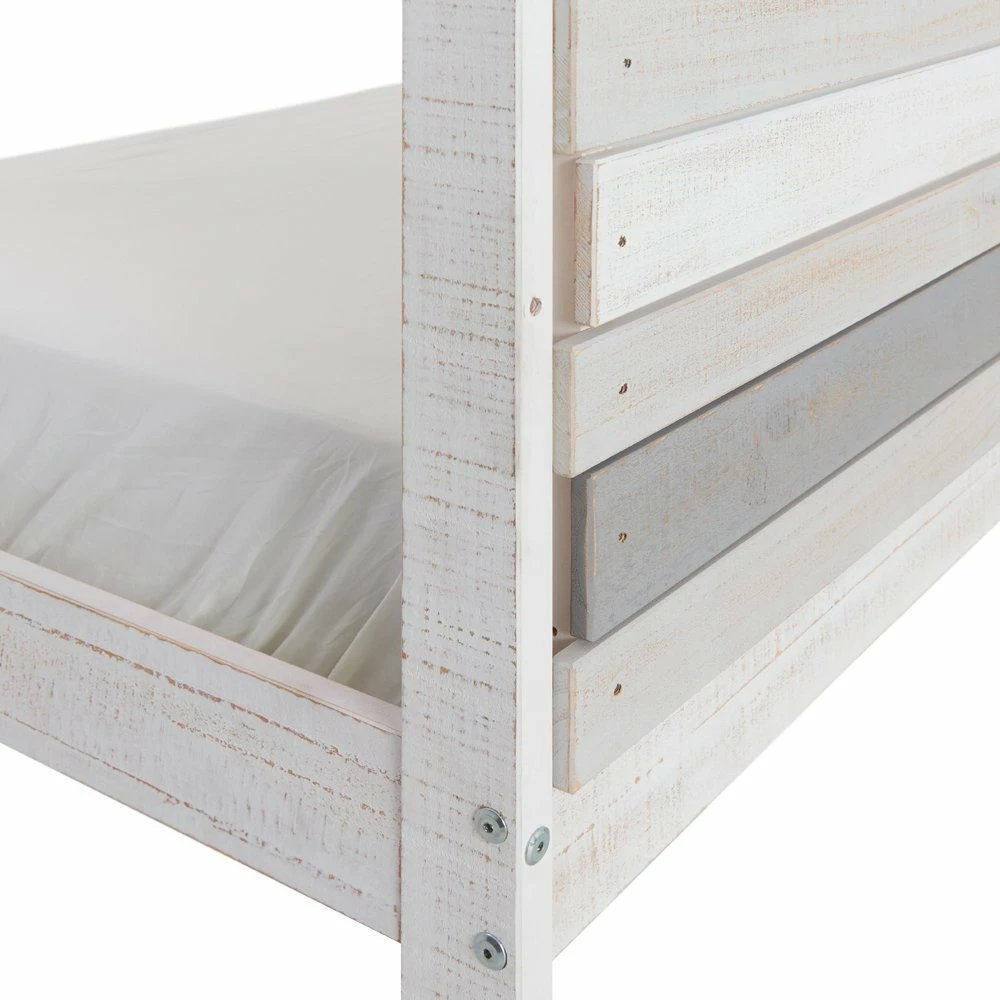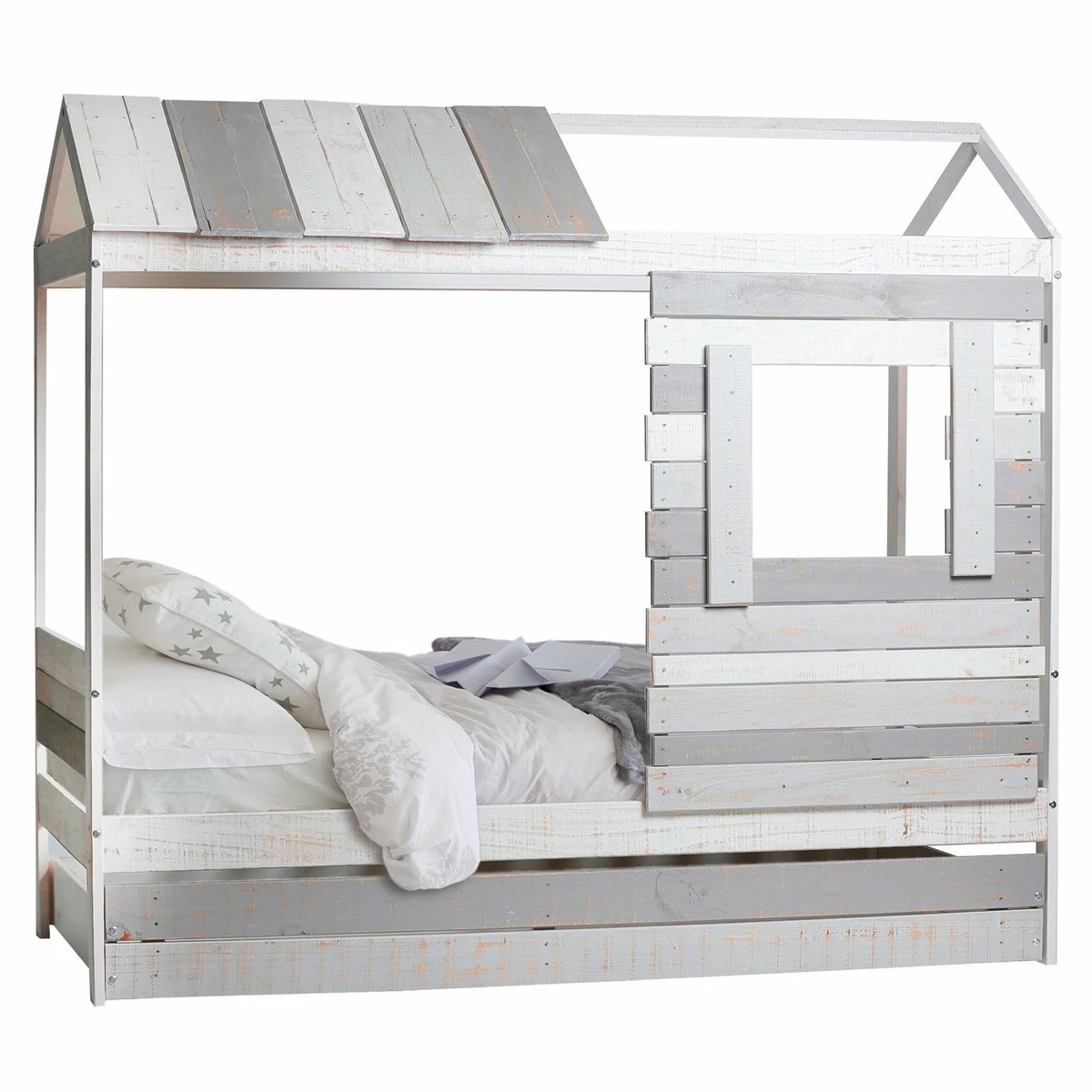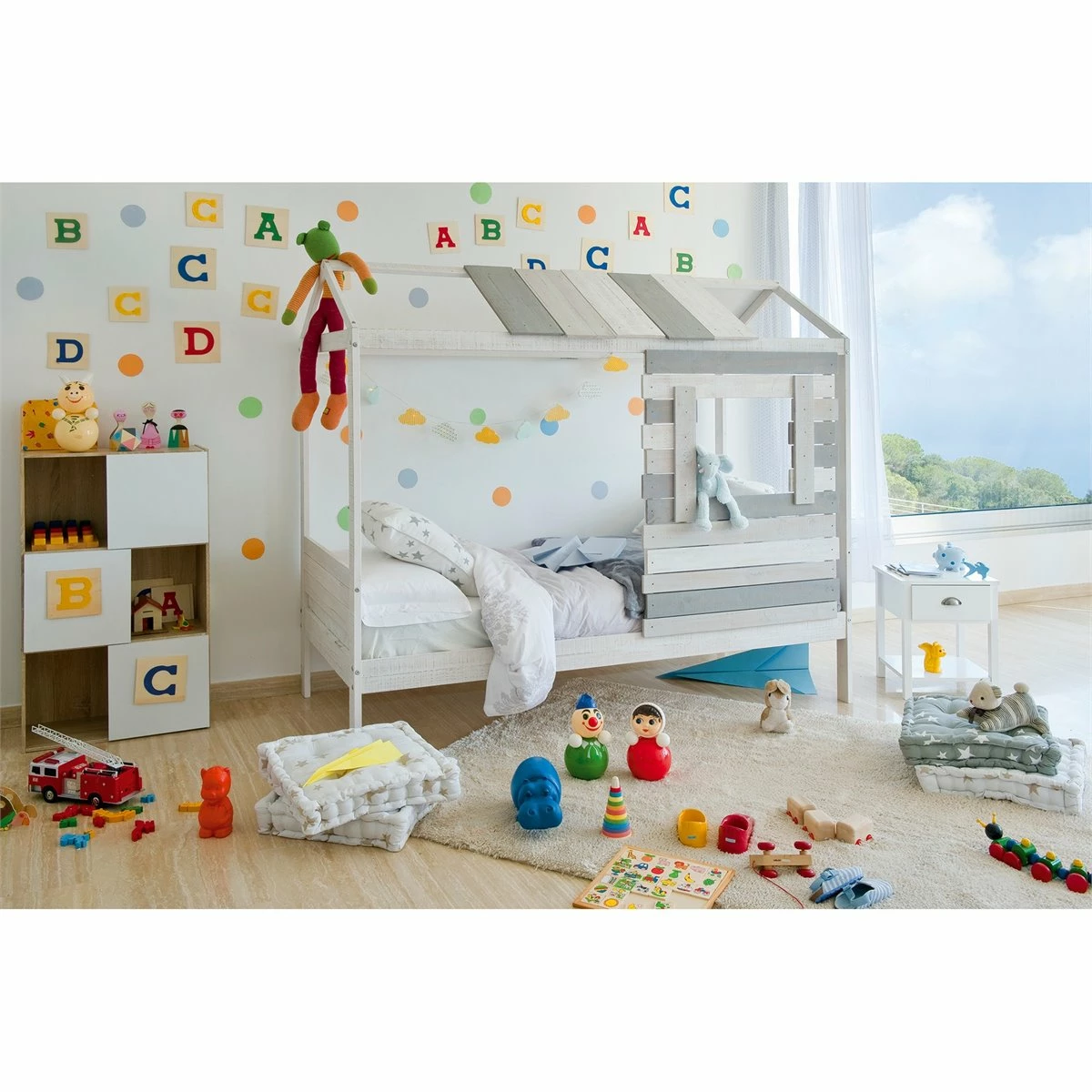 Para que tus hijos dejen volar su imaginación y tengan la habitación más original. Irse a dormir será cada día como un juego. La combinación del blanco y el gris, con detalles de madera envejecida, forma un conjunto muy decorativo, resistente y duradero debido a su estructura de madera de pino. Además, no es necesario adquirir somier, será el fuerte particular de tus hijos.