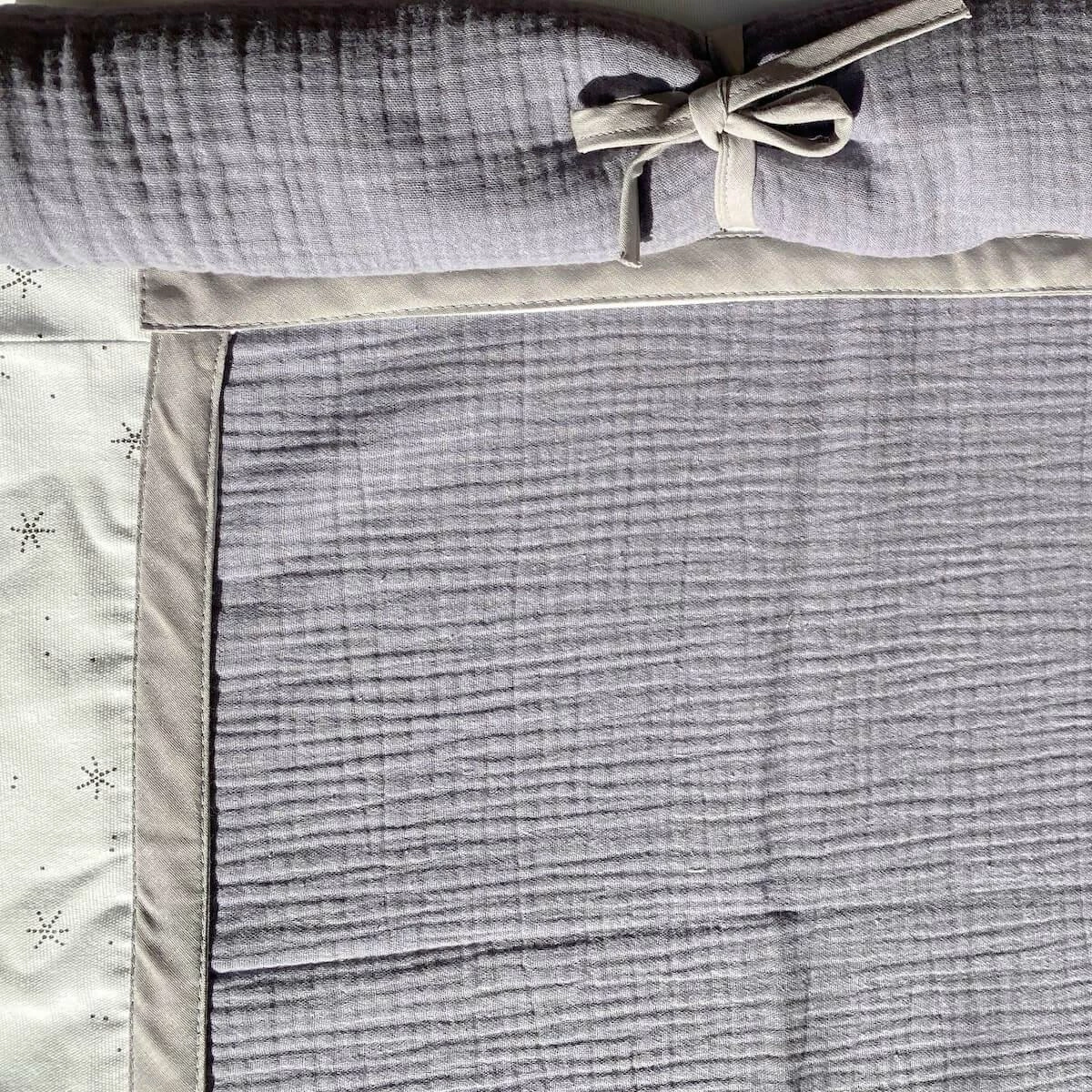 • Materiales: Marco de la cama en madera de haya maciza lacada en blanco y textiles en algodón orgánico certificado GOTS 120 gr/m2