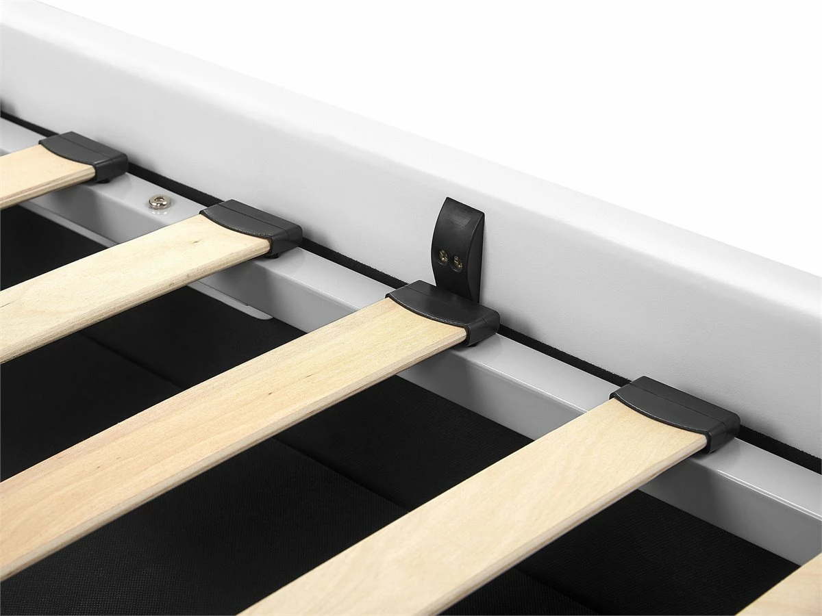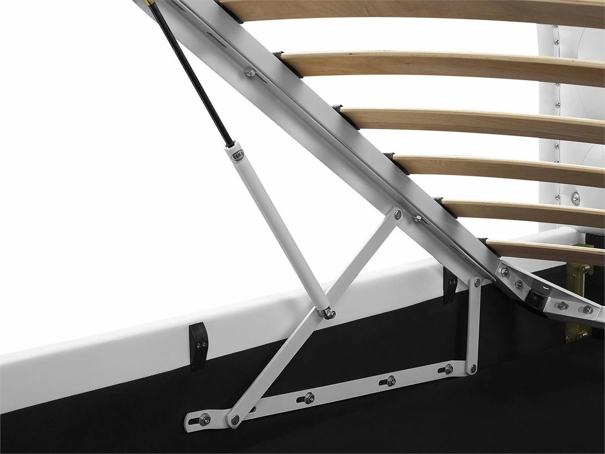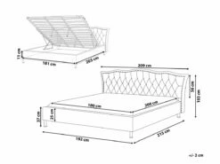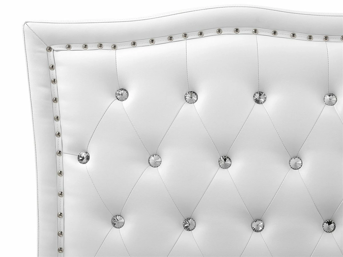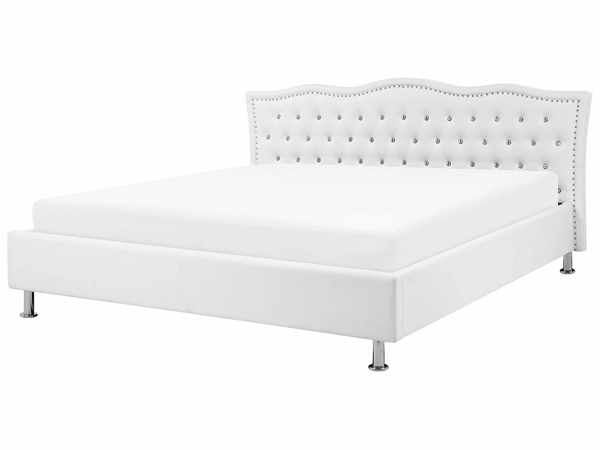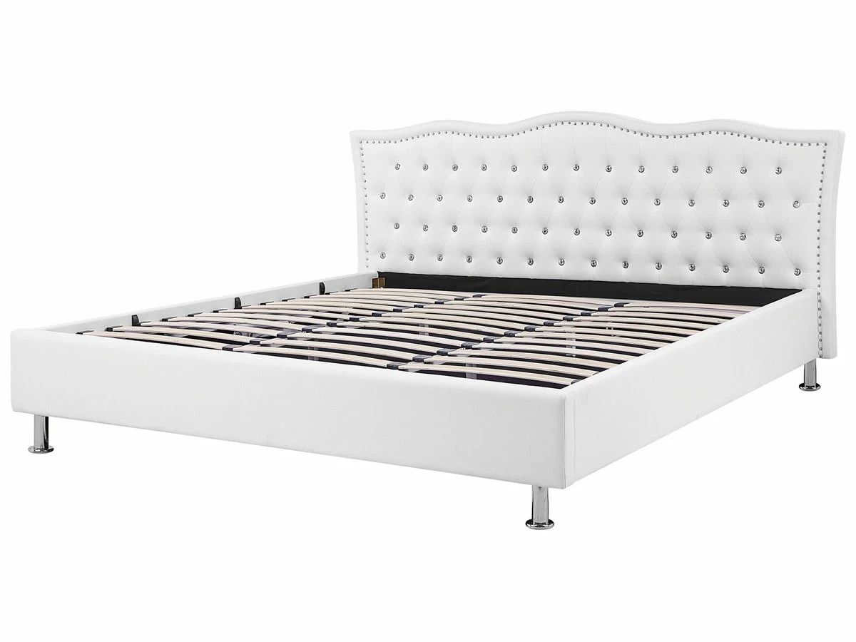 Cama de diseño glamuroso. Añade a tu dormitorio esta cama de diseño clásico. Está fabricada a partir de piel sintética de alta calidad. La estructura resistente garantiza un sueño saludable y proporciona soporte al colchón. El capitoné de botones y las tachuelas decorativas en el cabecero llaman poderosamente la atención. El amplio espacio de almacenaje optimiza la superficie disponible de la habitación. Detalles: Tipo de Producto: Cama matrimonial Estilo: Glamour Color: Blanco Tipo de material: Piel sintética Material principal: Piel sintética Material adicional: Metal Material del almacenamiento: Tablero de fibra Parte posterior tapizada: No Acabado: Mate Tipo de almacenamiento: Elevado Almacenamiento: Sí Dimensiones: Dimensiones del reposacabezas: 212×92 Ancho: 212 cm Dimensiones del almacenamiento: 181x203x10.5 Longitud: 215 cm Altura: 103 cm Superficie para dormir: 180×200 cm Peso: 80 kg Capacidad de peso: 400 kg La oferta incluye: 1 x Marco de cama con almacenamiento, 1 x Somier (Láminas: 36, No incluye: colchón y ropa de cama Ventajas: Distribución uniforme del peso corporal, Espaciosa superficie para dormir, Diseño elegante, Acolchado de alta calidad, Muy fácil de conservar, Espacio de almacenamiento funcional Información de montaje: Requiere montaje completo. 45-60 min. Información adicional: La altura del colchón visible en la imagen es de 20 cm. El mecanismo de elevación hidráulica está destinado para los colchones cuyo peso no supera los 60 kg Consejos de mantenimiento: Piel sintética: 1.Aspire con un accesorio adecuado 2.Una vez a la semana, limpie con un paño húmedo y seque después. No engrasar, 3.Use solo limpiadores suaves y acondicionadores dedicados a la piel sintética, 4.Limpie con agua destilada y use limpiadores a base de jabón en las manchas difíciles. Metal: 1.Para evitar arañazos, no use limpiadores abrasivos 2.Limpie con un limpiador y un paño suave, seque después 3.Para elementos de cobre o cromados, use agente abrillantador.