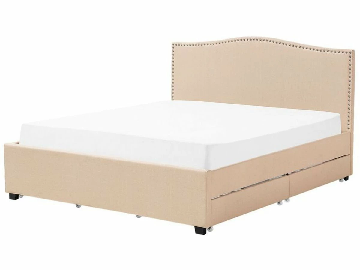 Cama de diseño tradicional. Añade un toque romántico a tu dormitorio con esta cama con somier. Está fabricada a partir de tela de poliéster de alta calidad y suave al tacto. El diseño simple y elegante resalta la decoración de cualquier suite moderna o vintage. Las tachuelas decorativas en el cabecero llaman poderosamente la atención. El amplio espacio de almacenaje optimiza la superficie disponible de la habitación. Detalles: Tipo de Producto: Cama matrimonial Estilo: Retro Color: Gris Tonalidad: Gris oscuro Tipo de material: Tejido Material principal: Poliéster Material adicional: Poliéster Material del almacenamiento: Tela no tejida Composición del Material: 100% Poliéster Parte posterior tapizada: No Tipo de almacenamiento: Cajones Almacenamiento: Sí Dimensiones: Dimensiones del reposacabezas: 187×110 Ancho: 187 cm Dimensiones del almacenamiento: 92x12x58 Longitud: 213 cm Altura: 110 cm Superficie para dormir: 180×200 cm Peso: 71 kg Capacidad de peso: 350 kg La oferta incluye: 4 x Cajón de almacenaje, 1 x Estructura de cama, 1 x Somier (39 listones flexibles, No incluye: colchón y ropa de cama Ventajas: Muy cómodo, Diseño atemporal, Combina con cualquier estilo de interior, Solida estructura, Detalles perfectos, Espacio de almacenamiento funcional Información de montaje: Requiere montaje completo. 45-60 min. Información adicional: La altura del colchón visible en la imagen es de 20 cm. Consejos de mantenimiento: Poliéster: 1.Aspire con un accesorio adecuado 2.Limpiar con champú seco y una esponja húmeda o un limpiador suave.
