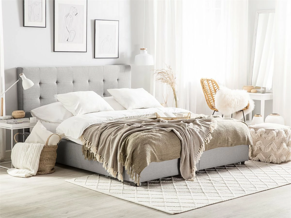 Cama de diseño glamuroso. Añade un toque de elegancia a tu dormitorio con esta cama con somier. Está fabricada a partir de tela de poliéster de alta calidad y resistente al desgaste. La estructura está elaborada de madera de contrachapado. El cabecero acolchado y el capitoné de botones decorativos aportan un cierto glamour. Incluye un espacio de almacenaje donde guardar la ropa de cama. Detalles: Tipo de Producto: Cama matrimonial Estilo: Glamour Color: Marrón Tipo de material: Tejido Material principal: Poliéster Material adicional: Madera de pino Material del almacenamiento: Tela no tejida Composición del Material: 100% Poliéster Parte posterior tapizada: No Tipo de almacenamiento: Cajones Almacenamiento: Sí Dimensiones: Dimensiones del reposacabezas: 153×105 Ancho: 153 cm Dimensiones del almacenamiento: 75x57x12 Longitud: 213 cm Altura: 109 cm Superficie para dormir: 140×200 cm Peso: 29 kg Capacidad de peso: 280 kg La oferta incluye: 2 x Cajón de almacenaje, 1 x Estructura de cama, 1 x Somier (26 listones flexibles Ventajas: Apto para cualquier tipo de colchón, La base de listones que absorbe los golpes proporciona un soporte perfecto, Prácticos y funcionales cajones, Ideal para todo tipo de decoración, Acolchado de alta calidad Información de montaje: Requiere montaje completo. 45-60 min. Información adicional: El grosor del colchón para la cama inferior no deberá ser mayor a 20 cm. Consejos de mantenimiento: Poliéster: 1.Limpiar con champú seco y una esponja húmeda o un limpiador suave 2.Aspire con un accesorio adecuado.