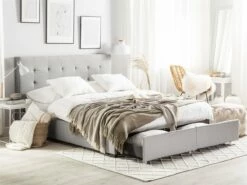 Cama de diseño glamuroso. Añade un toque de elegancia a tu dormitorio con esta cama con somier. Está fabricada a partir de tela de poliéster de alta calidad y resistente al desgaste. La estructura está elaborada de madera de contrachapado. El cabecero acolchado y el capitoné de botones decorativos aportan un cierto glamour. Incluye un espacio de almacenaje donde guardar la ropa de cama. Detalles: Tipo de Producto: Cama matrimonial Estilo: Glamour Color: Verde Tipo de material: Tejido Material principal: Poliéster Material adicional: Madera de pino Material del almacenamiento: Tela no tejida Composición del Material: 100% Poliéster Parte posterior tapizada: No Tipo de almacenamiento: Cajones Almacenamiento: Sí Dimensiones: Dimensiones del reposacabezas: 193×105 Ancho: 193 cm Dimensiones del almacenamiento: 95x57x12 Longitud: 213 cm Altura: 109 cm Superficie para dormir: 180×200 cm Peso: 34 kg Capacidad de peso: 280 kg La oferta incluye: 2 x Cajón de almacenaje, 1 x Estructura de cama, 1 x Somier (26 listones flexibles Ventajas: Apto para cualquier tipo de colchón, La base de listones que absorbe los golpes proporciona un soporte perfecto, Prácticos y funcionales cajones, Ideal para todo tipo de decoración, Acolchado de alta calidad Información de montaje: Requiere montaje completo. 45-60 min. Información adicional: El grosor del colchón para la cama inferior no deberá ser mayor a 20 cm. Consejos de mantenimiento: Poliéster: 1.Limpiar con champú seco y una esponja húmeda o un limpiador suave 2.Aspire con un accesorio adecuado.
