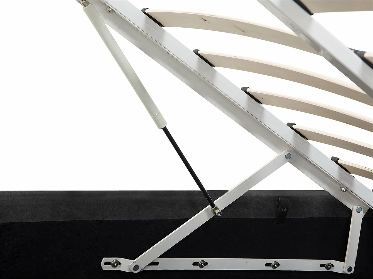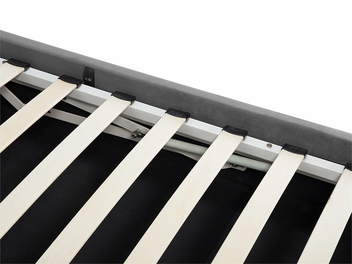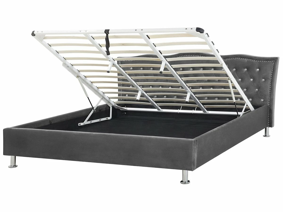 Cama de diseño glamuroso. Añade a tu dormitorio esta cama de diseño clásico. Está fabricada a partir de terciopelo de alta calidad. La estructura resistente garantiza un sueño saludable y proporciona soporte al colchón. El capitoné de botones y las tachuelas decorativas en el cabecero llaman poderosamente la atención. El amplio espacio de almacenaje optimiza la superficie disponible de la habitación. Detalles: Tipo de Producto: Cama matrimonial Estilo: Glamour Color: Gris Tonalidad: Gris oscuro Tipo de material: Poliéster aterciopelado Material principal: Terciopelo Material adicional: Metal Material del almacenamiento: Tablero de fibra Composición del Material: 100% Poliéster Parte posterior tapizada: No Tipo de almacenamiento: Elevado Almacenamiento: Sí Dimensiones: Dimensiones del reposacabezas: 212×90 Ancho: 212 cm Dimensiones del almacenamiento: 181x203x10.5 Longitud: 215 cm Altura: 103 cm Superficie para dormir: 180×200 cm Peso: 82 kg Capacidad de peso: 370 kg La oferta incluye: 1 x Somier (Láminas: 36, 1 x Marco de cama con almacenamiento, No incluye: colchón y ropa de cama Ventajas: Distribución uniforme del peso corporal, Espaciosa superficie para dormir, Diseño elegante, Acolchado de alta calidad, Muy fácil de conservar, Espacio de almacenamiento funcional Información de montaje: Requiere montaje completo. 45-60 min. Información adicional: El mecanismo de elevación hidráulica está destinado para los colchones cuyo peso no supera los 60 kg, La altura del colchón visible en la imagen es de 20 cm. Tenga en cuenta que la tela de terciopelo puede verse un poco diferente cuando se expone a una iluminación diferente: tiende a brillar más a la luz del día y parece más atenuada en la iluminación artificial interior. Debido a la estructura suave de alta densidad, el tono de la tela de terciopelo también puede variar cuando se pasa la mano en diferentes direcciones y ángulos. Para igualar el color y eliminar las arrugas, el material debe limpiarse con la palma de mano abierta en una dirección, limpiarse con un paño húmedo o una plancha con vapor. Consejos de mantenimiento: Terciopelo: 1.Aspire con un accesorio adecuado 2.Limpiar con champú seco y una esponja húmeda o un limpiador suave. Metal: 1.Limpie con un limpiador y un paño suave, seque después 2.Para elementos de cobre o cromados, use agente abrillantador 3.Para evitar arañazos, no use limpiadores abrasivos.