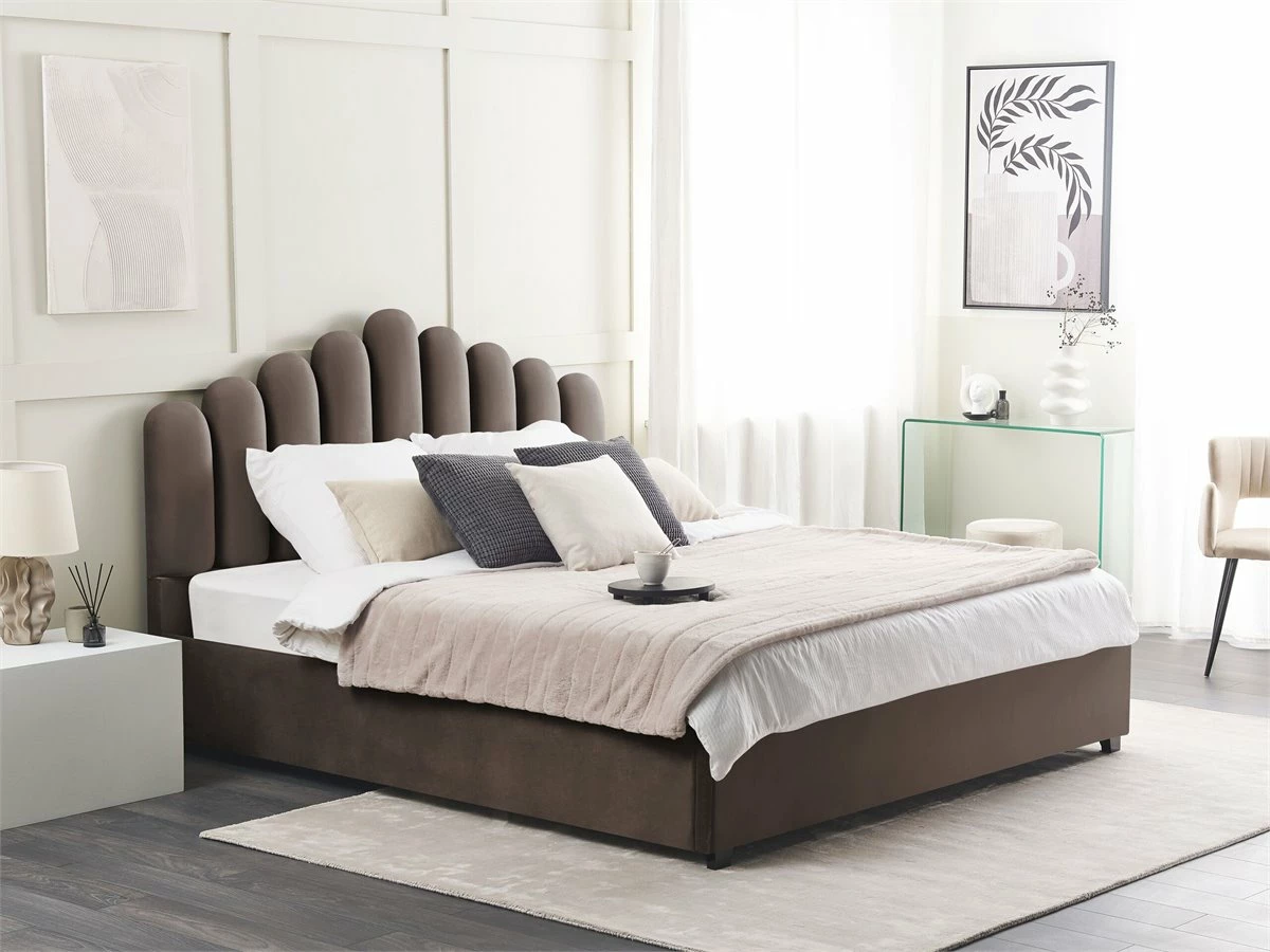 Cama de diseño glamuroso. Añade un toque de distinción a tu dormitorio con esta cama de diseño glamuroso. Está fabricada a partir de terciopelo de alta calidad y suave al tacto. El cabecero está decorado con forma de concha marina. Incluye un espacio de almacenaje donde guardar la ropa de cama. Detalles: Tipo de Producto: Cama matrimonial Estilo: Moderno Color: Beige Tonalidad: Gris pardo Tipo de material: Poliéster aterciopelado Material principal: Terciopelo Material adicional: Madera contrachapada Material del almacenamiento: Tela no tejida Composición del Material: 100% Poliéster Parte posterior tapizada: No Tipo de almacenamiento: Elevado Almacenamiento: Sí Dimensiones: Dimensiones del reposacabezas: 187x121x9 Ancho: 187 cm Dimensiones del almacenamiento: 181×202 Longitud: 214 cm Altura: 125 cm Superficie para dormir: 180×200 cm Peso: 82 kg Capacidad de peso: 380 kg La oferta incluye: 1 x Marco de cama con almacenamiento, 1 x Somier (42 listones flexibles, No incluye: colchón y ropa de cama Ventajas: La base de listones que absorbe los golpes proporciona un soporte perfecto, Distribución uniforme del peso corporal, Colores cálidos y elegantes, Apariencia elegante, Acolchado de alta calidad, Buen espacio de almacenamiento Información de montaje: Requiere montaje completo. Más de 60 min. Información adicional: Tenga en cuenta que la tela de terciopelo puede verse un poco diferente cuando se expone a una iluminación diferente: tiende a brillar más a la luz del día y parece más atenuada en la iluminación artificial interior. Debido a la estructura suave de alta densidad, el tono de la tela de terciopelo también puede variar cuando se pasa la mano en diferentes direcciones y ángulos. Para igualar el color y eliminar las arrugas, el material debe limpiarse con la palma de mano abierta en una dirección, limpiarse con un paño húmedo o una plancha con vapor. Consejos de mantenimiento: Terciopelo: 1.Limpiar con champú seco y una esponja húmeda o un limpiador suave 2.Aspire con un accesorio adecuado.