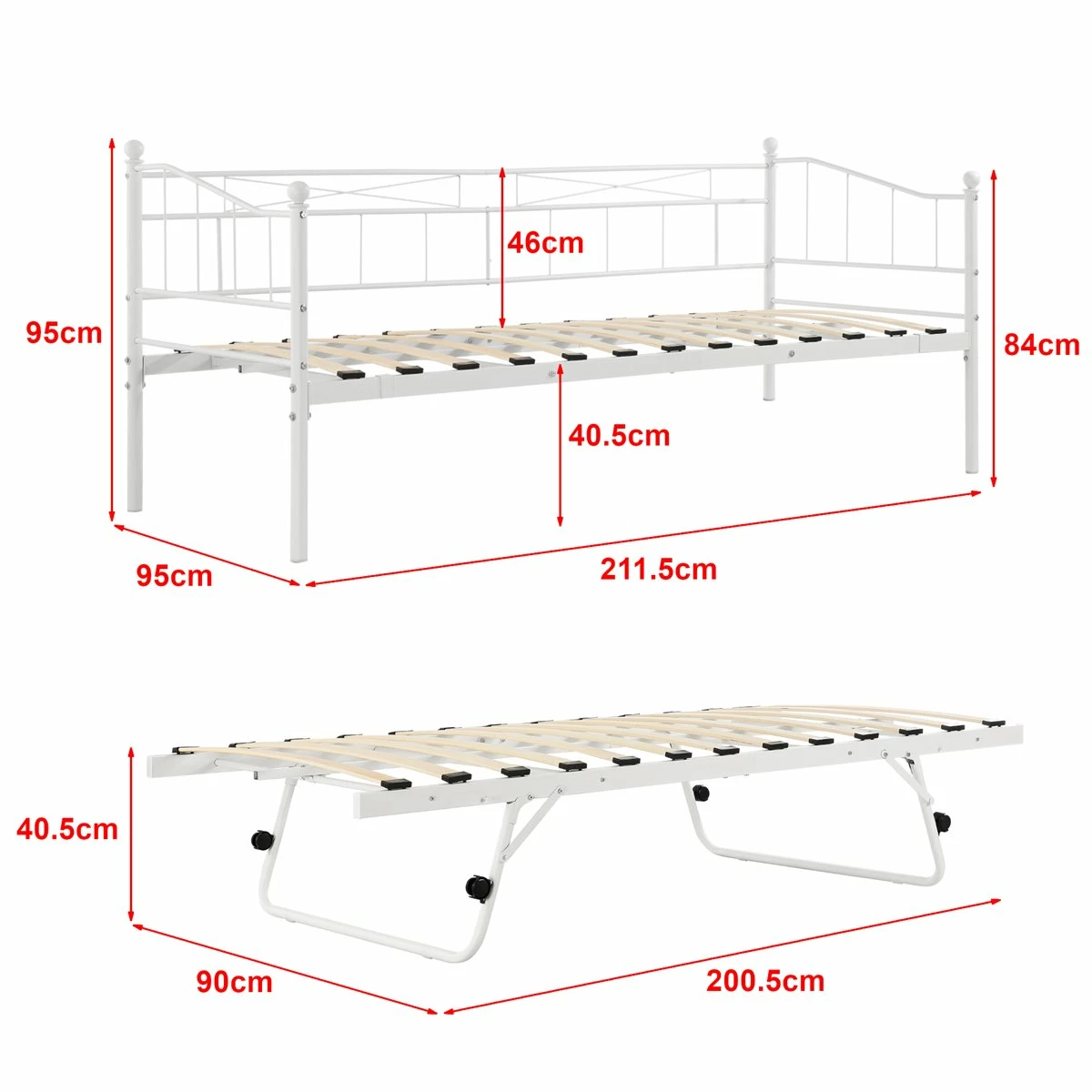 – Parte de la cama extraíble con marco desplegable (Longitud x Anchura x Altura: 200,5 x 90 x 40,5 cm