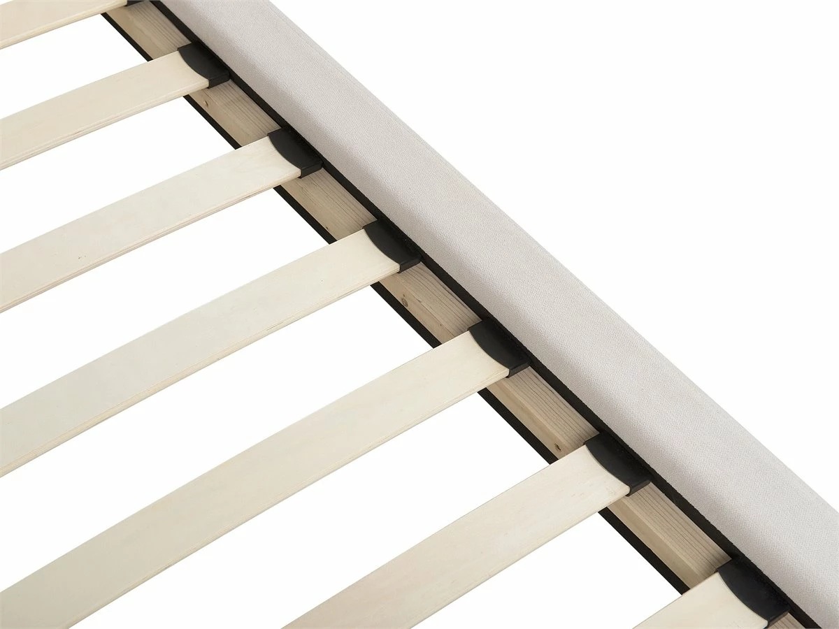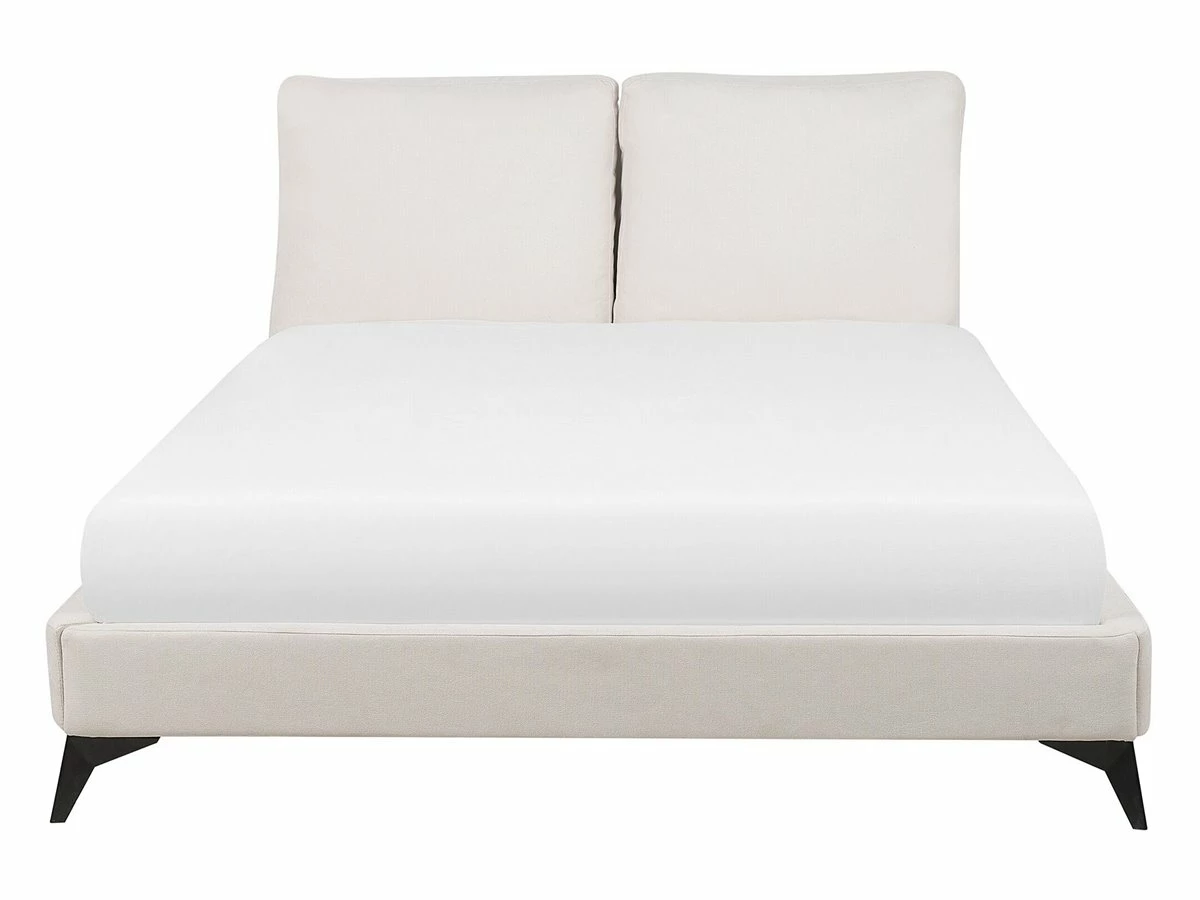 Cama de diseño moderno. Añade elegancia a tu dormitorio con esta cama con somier de diseño contemporáneo. Está fabricada a partir de chenilla de alta calidad. El cabecero acolchado con forma de almohada aporta exclusividad en el diseño. Las patas de tamaño reducido garantizan resistencia y estabilidad. Detalles: Tipo de Producto: Cama matrimonial Estilo: Glamour Color: Beige Tipo de material: Tejido Material principal: Chenilla Material adicional: Madera contrachapada Composición del Material: 100% Poliéster Parte posterior tapizada: No Dimensiones: Dimensiones del reposacabezas: 145x28x6 Ancho: 155 cm Longitud: 240 cm Altura: 98 cm Superficie para dormir: 140×200 cm Peso: 37 kg Capacidad de peso: 250 kg La oferta incluye: 1 x Estructura de cama, 1 x Somier (26 listones flexibles, No incluye: colchón y ropa de cama Ventajas: Apto para cualquier tipo de colchón, Combina con todo tipo de decoración, Acolchado de alta calidad, Estructura duradera y sólida, Cojines de respaldo con fundas extraíbles Información de montaje: Requiere montaje completo. 45-60 min. Información adicional: La altura del colchón visible en la imagen es de 20 cm. Consejos de mantenimiento: Chenilla: 1.Limpiar con champú seco y una esponja húmeda o un limpiador suave 2.Aspire con un accesorio adecuado. Madera de álamo: 1.Limpie con un limpiador y un paño suave en la dirección del grano 2.Los muebles con acabado de aceite deben engrasarse una vez al año, 3.Seque inmediatamente después de limpiar. para evitar que se acumule agua en los muebles.