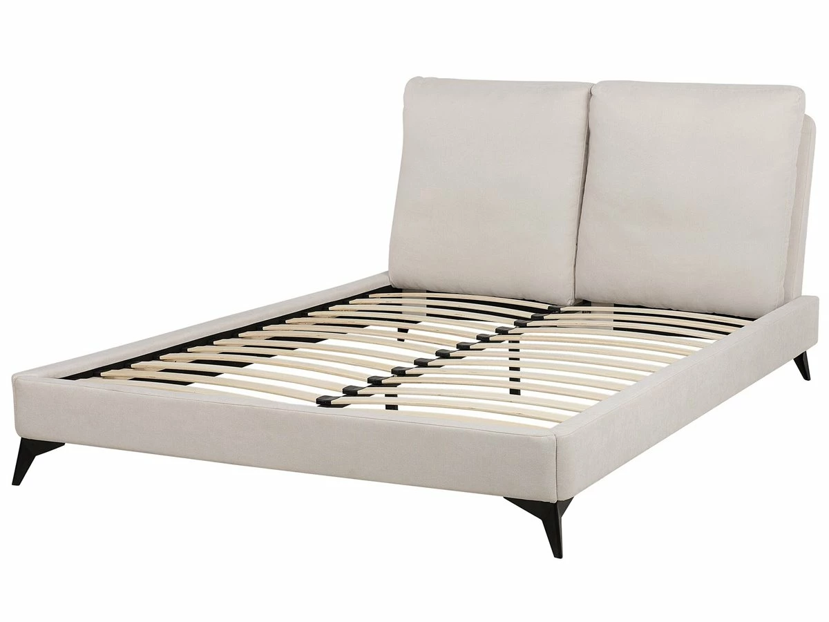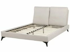 Cama de diseño moderno. Añade elegancia a tu dormitorio con esta cama con somier de diseño contemporáneo. Está fabricada a partir de chenilla de alta calidad. El cabecero acolchado con forma de almohada aporta exclusividad en el diseño. Las patas de tamaño reducido garantizan resistencia y estabilidad. Detalles: Tipo de Producto: Cama matrimonial Estilo: Glamour Color: Beige Tonalidad: Beige claro Tipo de material: Tejido Material principal: Chenilla Material adicional: Madera contrachapada Composición del Material: 100% Poliéster Parte posterior tapizada: No Dimensiones: Dimensiones del reposacabezas: 165x28x6 Ancho: 175 cm Longitud: 240 cm Altura: 98 cm Superficie para dormir: 160×200 cm Peso: 43 kg Capacidad de peso: 250 kg La oferta incluye: 1 x Estructura de cama, 1 x Somier (26 listones flexibles, 2 x Cojín Ventajas: Apto para cualquier tipo de colchón, Combina con todo tipo de decoración, Acolchado de alta calidad, Estructura duradera y sólida, Cojines de respaldo con fundas extraíbles Información de montaje: Requiere montaje completo. 45-60 min. Información adicional: La altura del colchón visible en la imagen es de 20 cm. Consejos de mantenimiento: Chenilla: 1.Aspire con un accesorio adecuado 2.Limpiar con champú seco y una esponja húmeda o un limpiador suave. Madera de álamo: 1.Seque inmediatamente después de limpiar. para evitar que se acumule agua en los muebles 2.Limpie con un limpiador y un paño suave en la dirección del grano 3.Los muebles con acabado de aceite deben engrasarse una vez al año