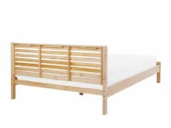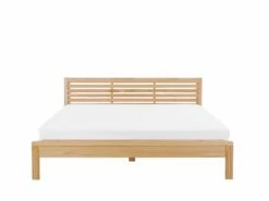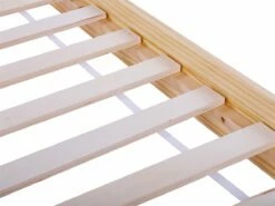 Cama de diseño moderno. Añade comodidad a tu dormitorio con esta cama con somier de estilo minimalista. Está fabricada a partir de madera de caucho de alta calidad. El somier de láminas garantiza un sueño saludable. El cabecero constituido por listones aporta un toque de distinción. Detalles: Tipo de Producto: Cama matrimonial Estilo: Escandinavo Color: Madera clara Tipo de material: Madera maciza Material principal: Madera de caucho Material adicional: Poliresina Parte posterior tapizada: No Acabado: Lacado Dimensiones: Dimensiones del reposacabezas: 180×51 Ancho: 185 cm Longitud: 210 cm Altura: 91 cm Superficie para dormir: 180×200 cm Peso: 43 kg Capacidad de peso: 300 kg La oferta incluye: 1 x Estructura de cama, 1 x Somier (15 listones, No incluye: colchón y ropa de cama Ventajas: La base de listones que absorbe los golpes proporciona un soporte perfecto, Espaciosa superficie para dormir, Combina con cualquier estilo de interior, Estilo escandinavo minimalista, Fabricación sólida y precisa Información de montaje: Requiere montaje completo. 45-60 min. Información adicional: La altura del colchón visible en la imagen es de 20 cm. Por favor, ten en cuenta que la madera es un producto natural, y cada pieza puede presentar ligeras variaciones. Las diferencias en el color o la textura, como las arrugas u otras características naturales, no se consideran un defecto ni tampoco una base de reclamación Consejos de mantenimiento: Madera de caucho: 1.Los muebles con acabado de aceite deben engrasarse una vez al año, 2.Seque inmediatamente después de limpiar. para evitar que se acumule agua en los muebles 3.Limpie con un limpiador y un paño suave en la dirección del grano.