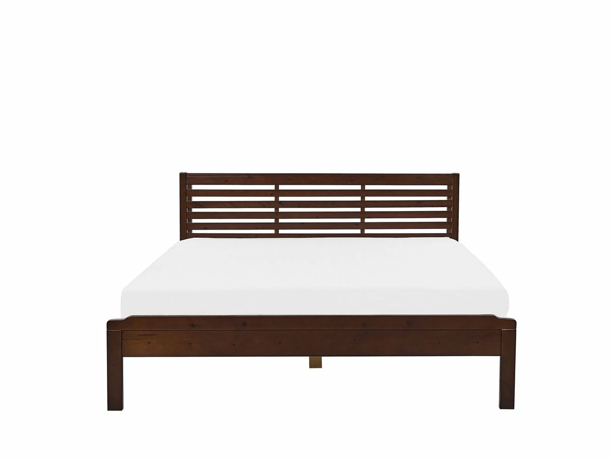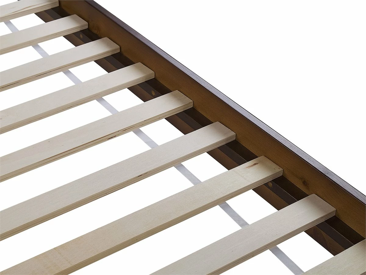 Cama de diseño moderno. Añade comodidad a tu dormitorio con esta cama con somier de estilo minimalista. Está fabricada a partir de madera de caucho de alta calidad. El somier de láminas garantiza un sueño saludable. El cabecero constituido por listones aporta un toque de distinción. Detalles: Tipo de Producto: Cama matrimonial Estilo: Rústico Color: Madera oscura Tipo de material: Madera maciza Material principal: Madera de caucho Material adicional: Poliresina Parte posterior tapizada: No Acabado: Lacado Dimensiones: Dimensiones del reposacabezas: 180×51 Ancho: 185 cm Longitud: 210 cm Altura: 91 cm Superficie para dormir: 180×200 cm Peso: 43 kg Capacidad de peso: 250 kg La oferta incluye: 1 x Somier (15 listones, 1 x Estructura de cama, No incluye: colchón y ropa de cama Ventajas: La base de listones que absorbe los golpes proporciona un soporte perfecto, Espaciosa superficie para dormir, Estilo escandinavo minimalista, Combina con cualquier estilo de interior, Fabricación sólida y precisa Información de montaje: Requiere montaje completo. 45-60 min. Información adicional: La altura del colchón visible en la imagen es de 20 cm. Por favor, ten en cuenta que la madera es un producto natural, y cada pieza puede presentar ligeras variaciones. Las diferencias en el color o la textura, como las arrugas u otras características naturales, no se consideran un defecto ni tampoco una base de reclamación Consejos de mantenimiento: Madera de caucho: 1.Seque inmediatamente después de limpiar. para evitar que se acumule agua en los muebles 2.Limpie con un limpiador y un paño suave en la dirección del grano 3.Los muebles con acabado de aceite deben engrasarse una vez al año