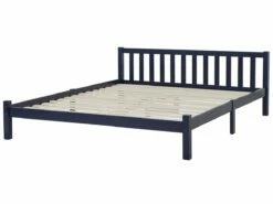 Cama de diseño moderno. Esta cama con somier de diseño atemporal combina bien con cualquier estilo de decoración. Está fabricada a partir de madera de pino de alta calidad. La estructura resistente y el somier de listones garantizan un sueño saludable y una distribución uniforme del peso corporal. Detalles: Tipo de Producto: Cama matrimonial Estilo: Escandinavo Color: Azul Tonalidad: Azul marino Tipo de material: Madera maciza Material principal: Madera de pino Material adicional: Madera de álamo Parte posterior tapizada: No Acabado: Pintado Dimensiones: Dimensiones del reposacabezas: 187×50 Ancho: 187 cm Longitud: 208 cm Altura: 70 cm Superficie para dormir: 180×200 cm Peso: 28 kg Capacidad de peso: 250 kg La oferta incluye: 1 x Estructura de cama, 1 x Somier de láminas (30 listones curvados, No incluye: colchón y ropa de cama Ventajas: Diseño clásico, Combina con cualquier estilo de interior, Pieza estable y robusta, Materiales de calidad, Mantenimiento sencillo Información de montaje: Requiere montaje completo. 45-60 min. Información adicional: La altura del colchón visible en la imagen es de 20 cm. La madera es un material natural, lo que permite conservar su estructura natural y el carácter único de la superficie también después de pintarlo Consejos de mantenimiento: Madera de pino: 1.Seque inmediatamente después de limpiar. para evitar que se acumule agua en los muebles 2.Limpie con un limpiador y un paño suave en la dirección del grano 3.Los muebles con acabado de aceite deben engrasarse una vez al año
