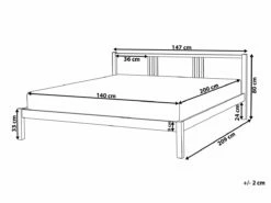 Cama de estilo minimalista. Esta cama con somier de diseño minimalista combina bien con cualquier dormitorio moderno o industrial. Está fabricada a partir de madera de pino de alta calidad. El somier de listones garantiza un sueño saludable. Las líneas elegantes y el cabecero se complementan a la perfección. Detalles: Tipo de Producto: Cama matrimonial Estilo: Escandinavo Color: Blanco Tipo de material: Madera maciza Material principal: Madera de pino Material adicional: Madera de álamo Parte posterior tapizada: No Acabado: Pintado Dimensiones: Dimensiones del reposacabezas: 147×56 Ancho: 147 cm Longitud: 209 cm Altura: 80 cm Superficie para dormir: 140×200 cm Peso: 23 kg Capacidad de peso: 250 kg La oferta incluye: 1 x Estructura de cama, 1 x Somier de láminas (30 listones curvados, No incluye: colchón y ropa de cama Ventajas: Muy cómodo, Estilo escandinavo minimalista, Materiales de la más alta calidad, Estructura duradera y sólida, Mantenimiento sencillo Información de montaje: Requiere montaje completo. 45-60 min. Información adicional: La altura del colchón visible en la imagen es de 20 cm. Consejos de mantenimiento: Madera de pino: 1.Los muebles con acabado de aceite deben engrasarse una vez al año, 2.Seque inmediatamente después de limpiar. para evitar que se acumule agua en los muebles 3.Limpie con un limpiador y un paño suave en la dirección del grano.