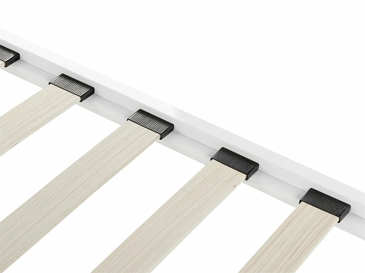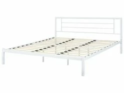 Cama de diseño industrial. Añade a tu dormitorio esta cama con somier de estilo minimalista. Está fabricada a partir de metal resistente. El somier de listones garantiza un sueño saludable y una distribución uniforme del peso corporal. Las patas de metal ofrecen la máxima estabilidad. Detalles: Tipo de Producto: Cama matrimonial Estilo: Moderno Color: Blanco Tipo de material: Metal Material principal: Metal Material adicional: Madera de álamo Parte posterior tapizada: No Acabado: Revestimiento en polvo Dimensiones: Dimensiones del reposacabezas: 187×56 Ancho: 187 cm Longitud: 209 cm Altura: 84 cm Superficie para dormir: 180×200 cm Peso: 30 kg Capacidad de peso: 200 kg La oferta incluye: 1 x Estructura de cama, 1 x Somier (Láminas: 36, No incluye: colchón y ropa de cama Ventajas: Apto para cualquier tipo de colchón, El marco integrado garantiza la máxima estabilización, Diseño tradicional con un toque moderno, Estructura duradera y sólida, Muy fácil de conservar Información de montaje: Requiere montaje completo. 45-60 min. Información adicional: La altura del colchón visible en la imagen es de 20 cm. Consejos de mantenimiento: Metal: 1.Para evitar arañazos, no use limpiadores abrasivos 2.Limpie con un limpiador y un paño suave, seque después 3.Para elementos de cobre o cromados, use agente abrillantador.
