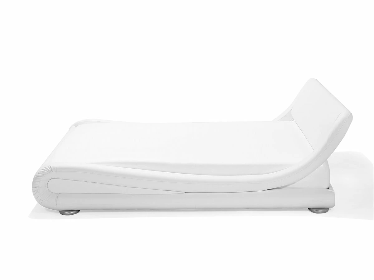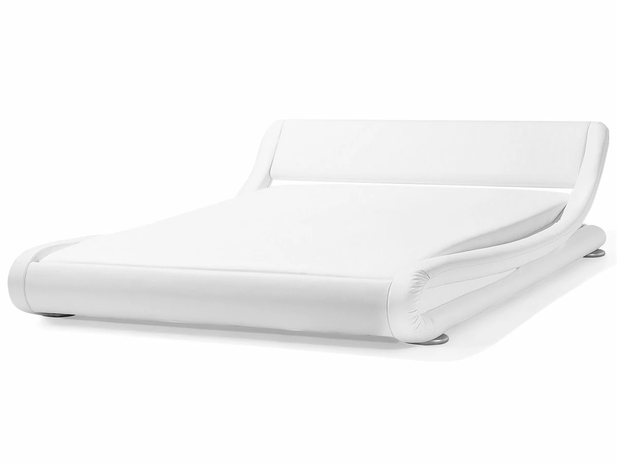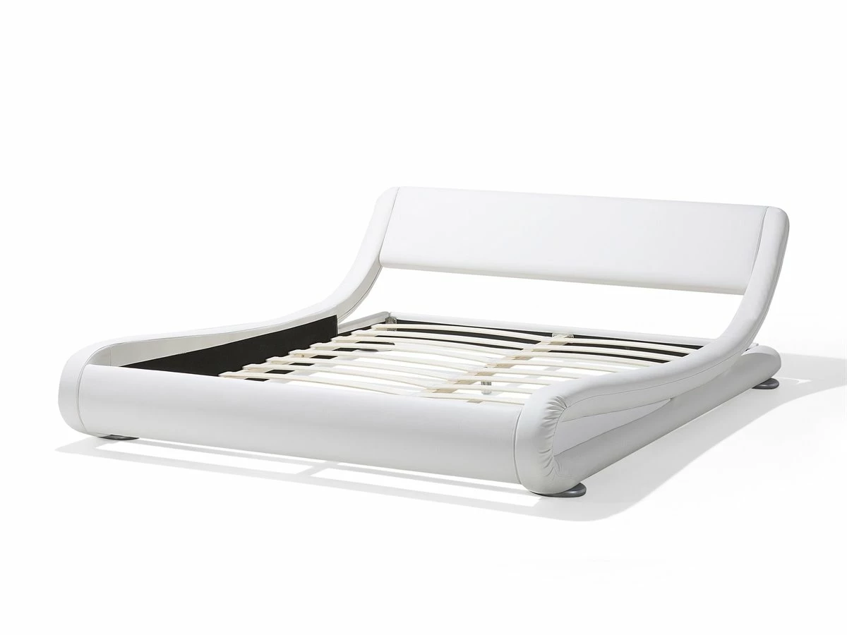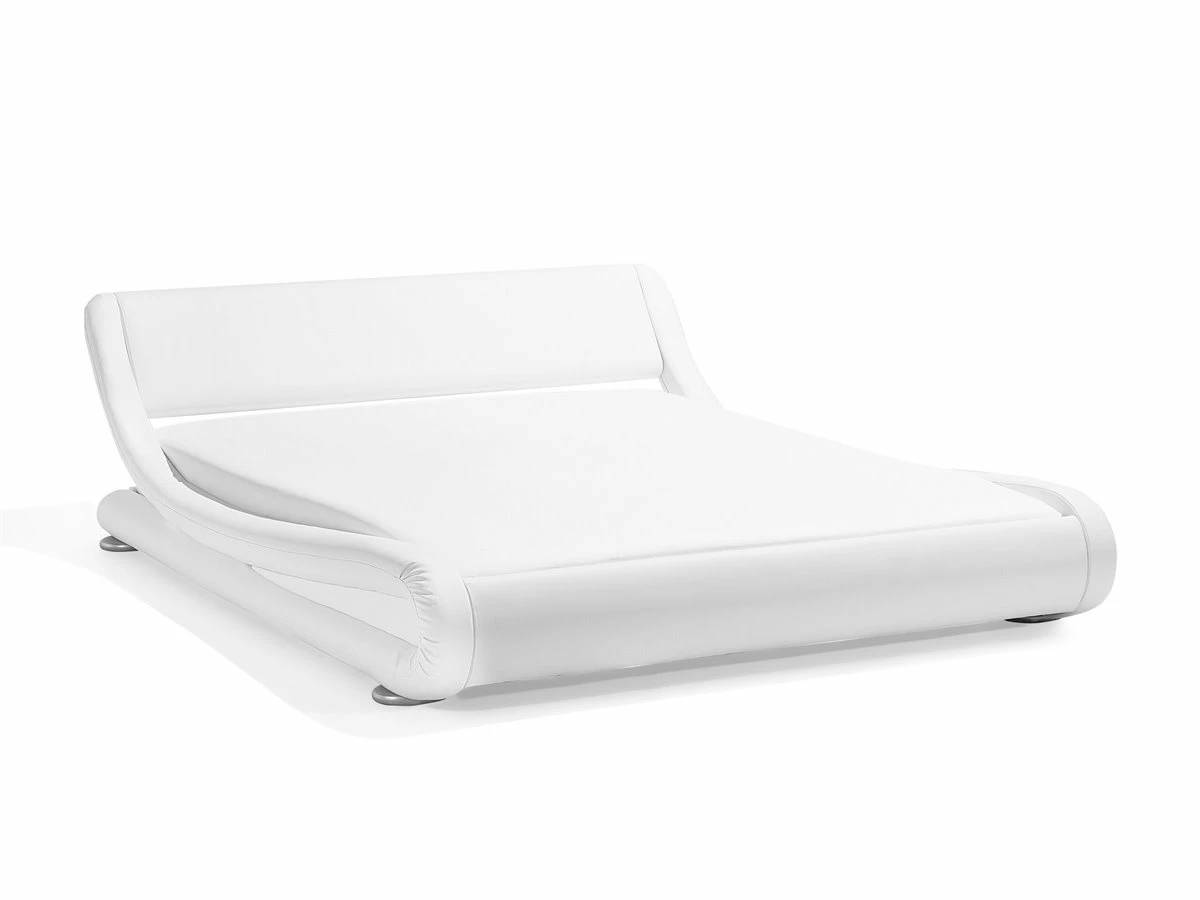 Cama de diseño glamuroso. Añade un toque de modernidad a tu dormitorio con esta cama con somier. Está fabricada a partir de piel sintética de alta calidad y suave al tacto. Las líneas curvas y elegantes aportan elegancia y comodidad. Las patas de metal completan el diseño. Detalles: Tipo de Producto: Cama matrimonial Estilo: Glamour Color: Blanco Tipo de material: Piel sintética Material principal: Piel sintética Material adicional: Material sintético Composición del Material: 100% Piel ecológica Parte posterior tapizada: No Acabado: Mate Dimensiones: Dimensiones del reposacabezas: 200×35 Ancho: 200 cm Longitud: 221 cm Altura: 70 cm Superficie para dormir: 180×200 cm Peso: 52 kg Capacidad de peso: 200 kg La oferta incluye: 1 x Estructura de cama, 1 x Somier (24 listones flexibles, No incluye: colchón y ropa de cama Ventajas: La base de listones que absorbe los golpes proporciona un soporte perfecto, Espaciosa superficie para dormir, Diseño moderno, Construcción muy estable, Completamente tapizado Información de montaje: Requiere montaje completo. 45-60 min. Información adicional: La altura del colchón visible en la imagen es de 20 cm. Consejos de mantenimiento: Piel sintética: 1.Limpie con agua destilada y use limpiadores a base de jabón en las manchas difíciles 2.Aspire con un accesorio adecuado 3.Una vez a la semana, limpie con un paño húmedo y seque después. No engrasar, 4.Use solo limpiadores suaves y acondicionadores dedicados a la piel sintética