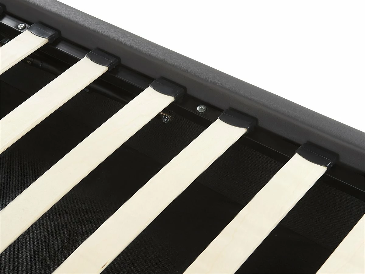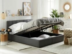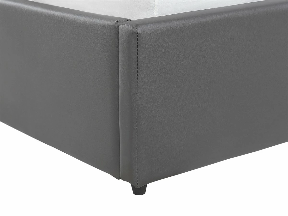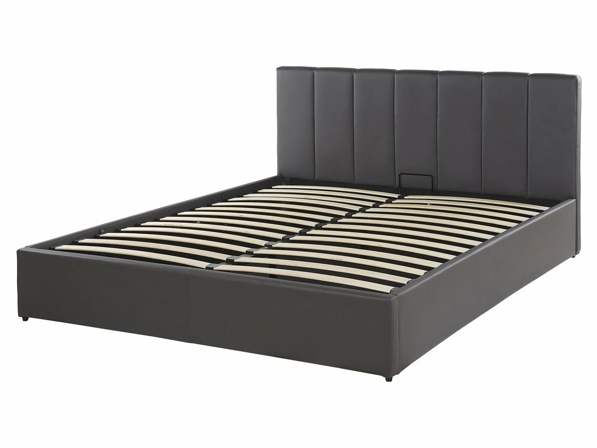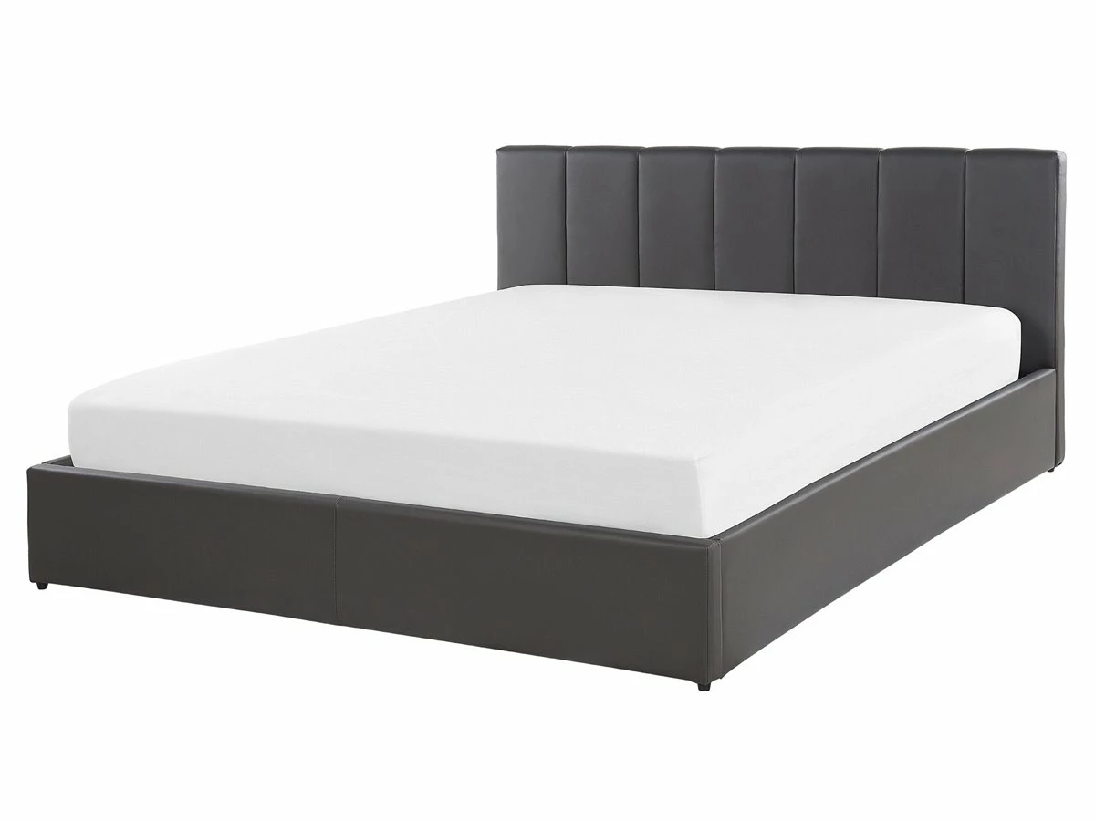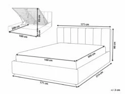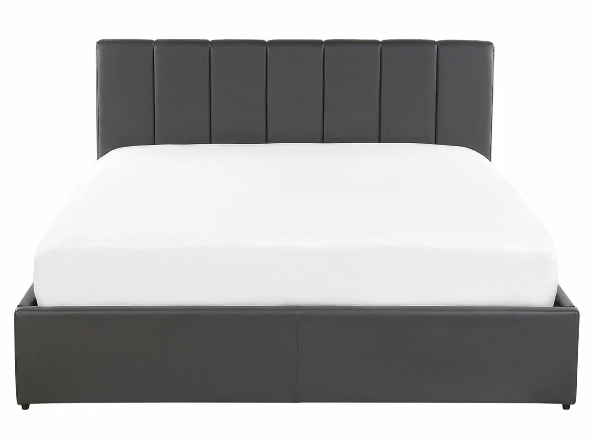 Cama con almacenaje. Añade un toque de modernidad a tu dormitorio con esta cama con somier. Está fabricada a partir de piel sintética de alta calidad. El somier de listones garantiza un sueño saludable y proporciona soporte al colchón. Incluye un amplio espacio de almacenaje donde guardar la ropa de cama. Detalles: Tipo de Producto: Cama matrimonial Estilo: Moderno Color: Gris Tonalidad: Gris oscuro Tipo de material: Piel sintética Material principal: Piel sintética Material adicional: Material sintético Material del almacenamiento: Tela no tejida Composición del Material: 100% Poliéster Parte posterior tapizada: No Tipo de almacenamiento: Elevado Almacenamiento: Sí Dimensiones: Dimensiones del reposacabezas: 171×90 Ancho: 171 cm Dimensiones del almacenamiento: 200x160x23 Longitud: 214 cm Altura: 90 cm Superficie para dormir: 160×200 cm Peso: 47 kg Capacidad de peso: 300 kg La oferta incluye: 1 x Marco de cama con almacenamiento, 1 x Somier (26 listones flexibles, No incluye: colchón y ropa de cama Ventajas: La base de listones que absorbe los golpes proporciona un soporte perfecto, Espaciosa superficie para dormir, Diseño tradicional con un toque moderno, Tapicería de piel sintética de alta calidad para un aspecto natural, Materiales de calidad, Práctico espacio de almacenaje para todos tus accesorios Información de montaje: Requiere montaje completo. 45-60 min. Información adicional: La altura del colchón visible en la imagen es de 20 cm. Consejos de mantenimiento: Piel sintética: 1.Aspire con un accesorio adecuado 2.Una vez a la semana, limpie con un paño húmedo y seque después. No engrasar, 3.Use solo limpiadores suaves y acondicionadores dedicados a la piel sintética, 4.Limpie con agua destilada y use limpiadores a base de jabón en las manchas difíciles.