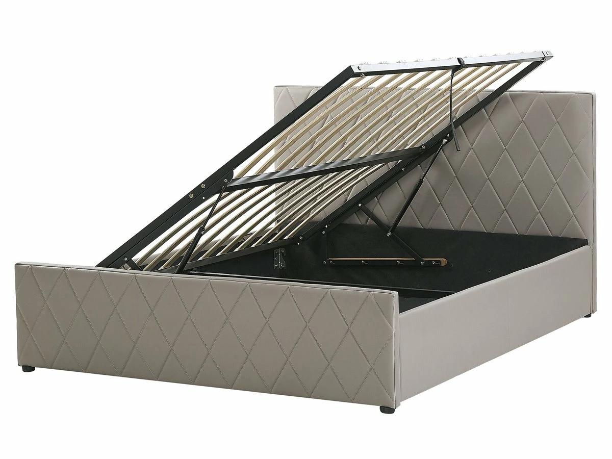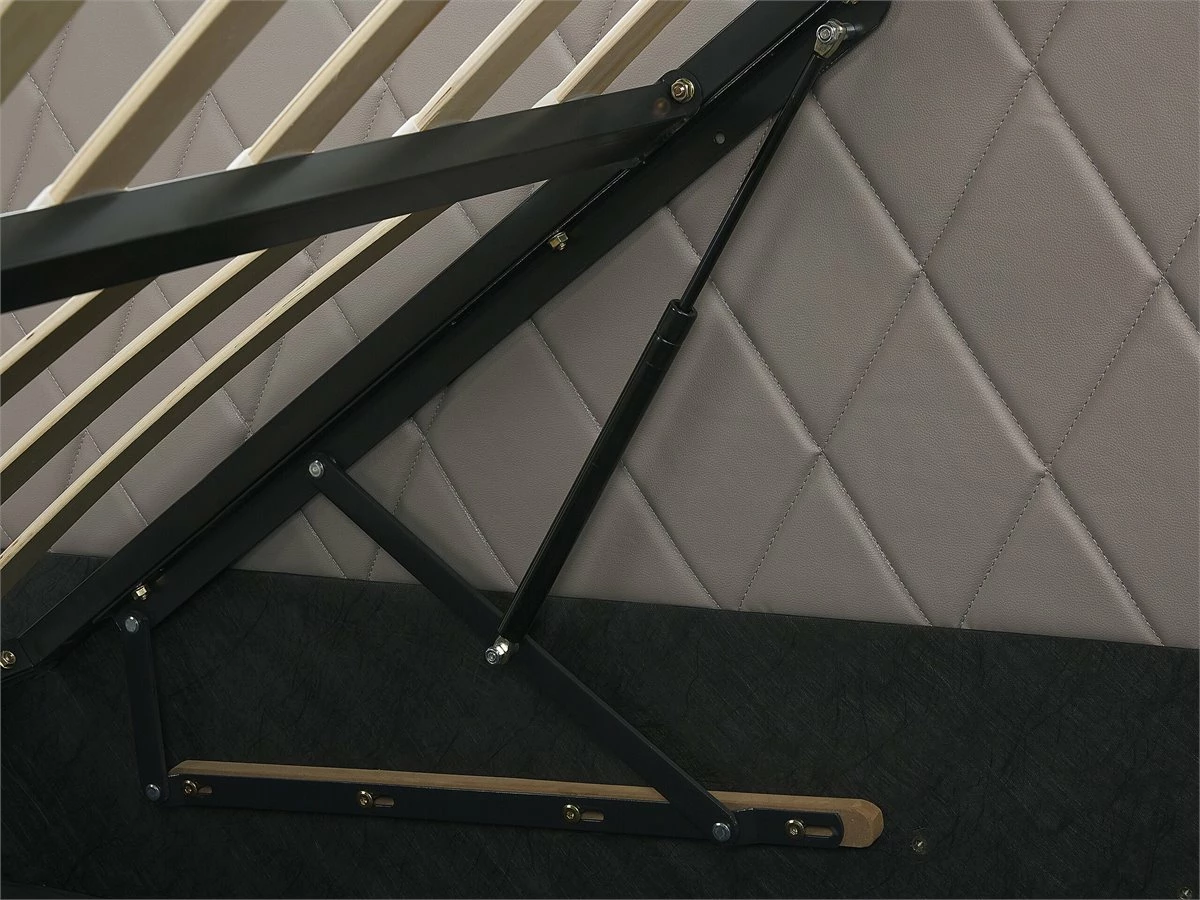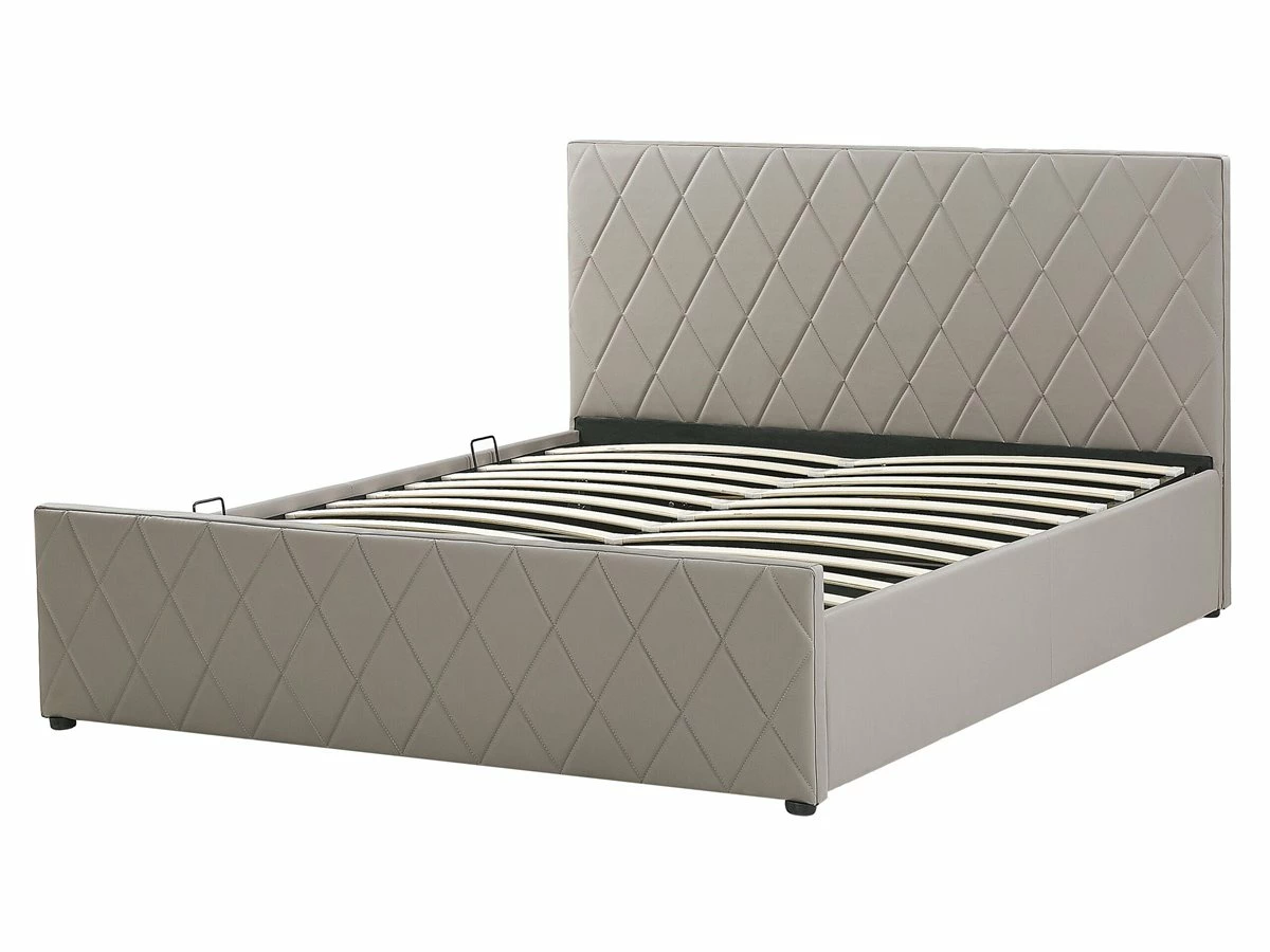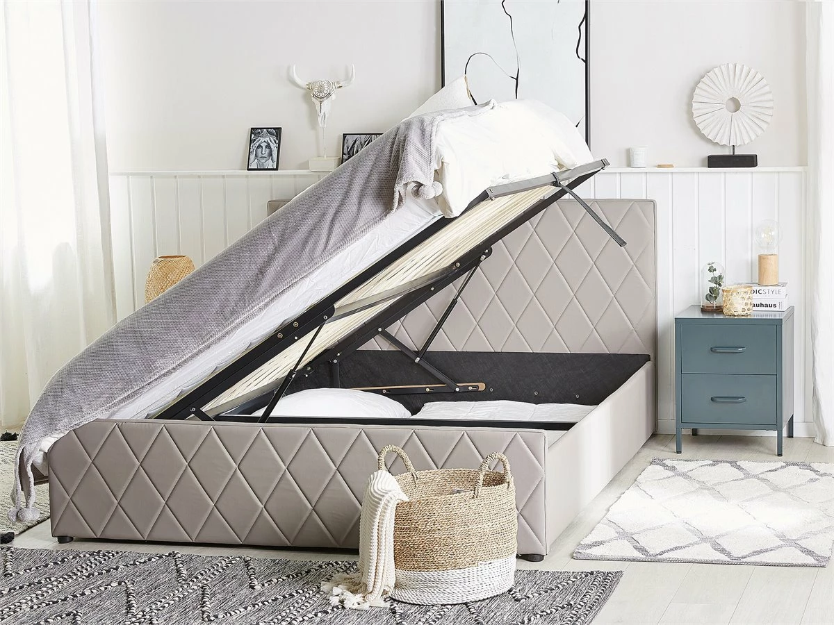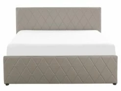 Cama con almacenaje. Añade elegancia y funcionalidad a tu dormitorio con esta cama con somier. Está fabricada a partir de piel sintética de alta calidad. El somier de listones proporciona soporte al colchón. Puedes montarlo para abrir por el lado derecho o izquierdo de la cama. El capitoné decorativo aporta un toque de distinción a cualquier interior. Incluye un amplio espacio de almacenaje donde guardar la ropa de cama. Detalles: Tipo de Producto: Cama matrimonial Estilo: Moderno Color: Gris Tonalidad: Gris pardo Tipo de material: Piel sintética Material principal: Piel sintética Material adicional: Material sintético Material del almacenamiento: Tela no tejida Composición del Material: 100% Piel ecológica Parte posterior tapizada: No Tipo de almacenamiento: Elevado Almacenamiento: Sí Dimensiones: Dimensiones del reposacabezas: 170×99 Ancho: 170 cm Dimensiones del almacenamiento: 21x161x200 Longitud: 214 cm Altura: 99 cm Superficie para dormir: 160×200 cm Peso: 53 kg Capacidad de peso: 200 kg La oferta incluye: 1 x Marco de cama con almacenamiento, 1 x Somier (24 listones flexibles, No incluye: colchón y ropa de cama Ventajas: La base de listones que absorbe los golpes proporciona un soporte perfecto, Distribución uniforme del peso corporal, El almacenamiento se puede montar para abrir desde el lado derecho o izquierdo, Espaciosa superficie para dormir, Diseño elegante, Espacio de almacenamiento funcional Información de montaje: Requiere montaje completo. 45-60 min. Información adicional: El grosor del colchón para la cama inferior no deberá ser mayor a 20 cm. Consejos de mantenimiento: Piel sintética: 1.Use solo limpiadores suaves y acondicionadores dedicados a la piel sintética, 2.Limpie con agua destilada y use limpiadores a base de jabón en las manchas difíciles 3.Aspire con un accesorio adecuado 4.Una vez a la semana, limpie con un paño húmedo y seque después. No engrasar