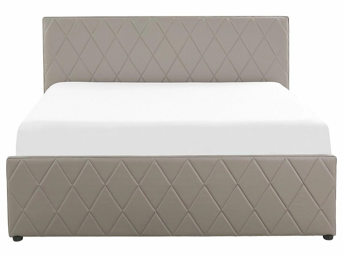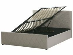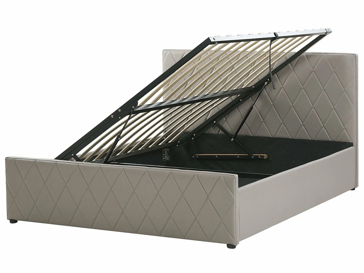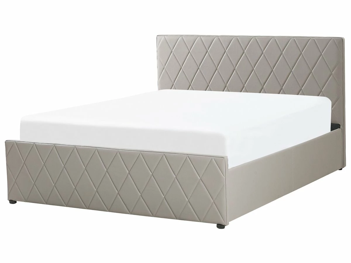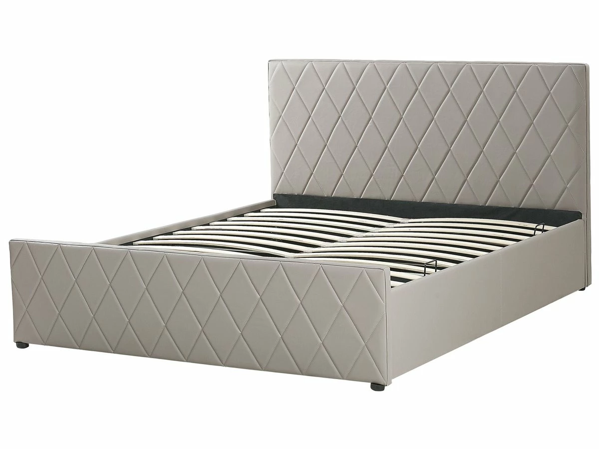 Cama con almacenaje. Añade elegancia y funcionalidad a tu dormitorio con esta cama con somier. Está fabricada a partir de piel sintética de alta calidad. El somier de listones proporciona soporte al colchón. Puedes montarlo para abrir por el lado derecho o izquierdo de la cama. El capitoné decorativo aporta un toque de distinción a cualquier interior. Incluye un amplio espacio de almacenaje donde guardar la ropa de cama. Detalles: Tipo de Producto: Cama matrimonial Estilo: Moderno Color: Gris Tonalidad: Gris pardo Tipo de material: Piel sintética Material principal: Piel sintética Material adicional: Material sintético Material del almacenamiento: Tela no tejida Composición del Material: 100% Piel ecológica Parte posterior tapizada: No Tipo de almacenamiento: Elevado Almacenamiento: Sí Dimensiones: Dimensiones del reposacabezas: 190×99 Ancho: 190 cm Dimensiones del almacenamiento: 21x181x200 Longitud: 214 cm Altura: 99 cm Superficie para dormir: 180×200 cm Peso: 54 kg Capacidad de peso: 200 kg La oferta incluye: 1 x Marco de cama con almacenamiento, 1 x Somier (24 listones flexibles, No incluye: colchón y ropa de cama Ventajas: La base de listones que absorbe los golpes proporciona un soporte perfecto, Distribución uniforme del peso corporal, El almacenamiento se puede montar para abrir desde el lado derecho o izquierdo, Espaciosa superficie para dormir, Diseño elegante, Espacio de almacenamiento funcional Información de montaje: Requiere montaje completo. 45-60 min. Información adicional: La altura del colchón visible en la imagen es de 20 cm. Consejos de mantenimiento: Piel sintética: 1.Aspire con un accesorio adecuado 2.Una vez a la semana, limpie con un paño húmedo y seque después. No engrasar, 3.Use solo limpiadores suaves y acondicionadores dedicados a la piel sintética, 4.Limpie con agua destilada y use limpiadores a base de jabón en las manchas difíciles.
