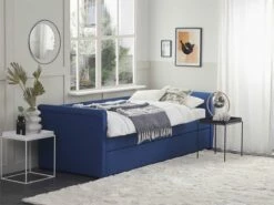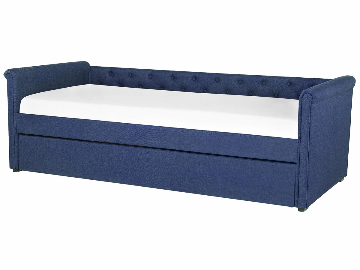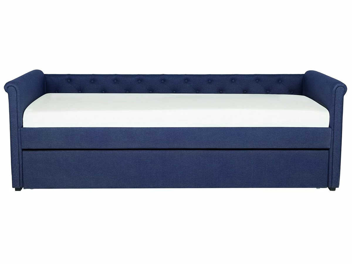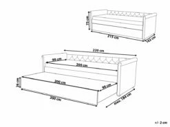 Cama nido de estilo Chesterfield. Esta cama con somier de diseño Chesterfield combina estilo y funcionalidad. Está fabricada a partir de tela de poliéster de alta calidad y suave al tacto. El somier de listones garantiza un sueño saludable y una distribución uniforme del peso corporal. Los botones decorativos encajan a la perfección con cualquier decoración retro o tradicional. Detalles: Tipo de Producto: Sofá cama Estilo: Glamour Color: Verde Tonalidad: Verde oscuro Tipo de material: Tejido Material principal: Poliéster Material adicional: Poliéster Composición del Material: 100% Poliéster Parte posterior tapizada: No Dimensiones: Dimensiones del reposacabezas: 102×75 Ancho: 184 cm Longitud: 220 cm Altura: 75 cm Superficie para dormir: 90×200 cm Peso: 53 kg Capacidad de peso: 130 kg La oferta incluye: 1 x Estructura de cama, 2 x Somier (15 listones, No incluye: colchón y ropa de cama Ventajas: La base de listones que absorbe los golpes proporciona un soporte perfecto, Segunda cama extraíble para usar si es necesario, Diseño tradicional con un toque moderno, Acolchado de alta calidad, Estructura duradera y sólida Información de montaje: Requiere montaje completo. 45-60 min. Información adicional: El grosor del colchón para la cama inferior no deberá ser mayor a 20 cm. Consejos de mantenimiento: Poliéster: 1.Aspire con un accesorio adecuado 2.Limpiar con champú seco y una esponja húmeda o un limpiador suave.