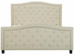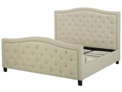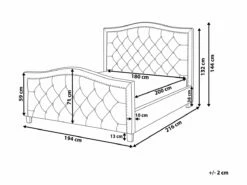 Cama de diseño glamuroso. Añade un toque vintage a tu dormitorio con esta cama con somier. Está fabricada a partir de tela de poliéster de alta calidad. El somier de listones garantiza un sueño saludable y una distribución uniforme del peso. Los botones decorativos y las tachuelas en el cabecero y el pie de cama aportan una cierta nota de glamour. Detalles: Tipo de Producto: Cama matrimonial Estilo: Retro Color: Beige Tipo de material: Tejido Material principal: Poliéster Material adicional: Madera de pino Composición del Material: 100% Poliéster Parte posterior tapizada: No Dimensiones: Dimensiones del reposacabezas: 194×131 Ancho: 194 cm Longitud: 216 cm Altura: 144 cm Superficie para dormir: 180×200 cm Peso: 68 kg Capacidad de peso: 300 kg La oferta incluye: 1 x Somier (45 listones flexibles, 1 x Estructura de cama, No incluye: colchón y ropa de cama Ventajas: La base de listones que absorbe los golpes proporciona un soporte perfecto, Espaciosa superficie para dormir, Acabado con remaches que enfatizan la forma del mueble, Diseño elegante, Acolchado con botones decorativos, Acolchado de alta calidad Información de montaje: Requiere montaje completo. 20-40 min. Información adicional: La altura del colchón visible en la imagen es de 20 cm. Consejos de mantenimiento: Poliéster: 1.Limpiar con champú seco y una esponja húmeda o un limpiador suave 2.Aspire con un accesorio adecuado. Madera de pino: 1.Limpie con un limpiador y un paño suave en la dirección del grano 2.Los muebles con acabado de aceite deben engrasarse una vez al año, 3.Seque inmediatamente después de limpiar. para evitar que se acumule agua en los muebles.