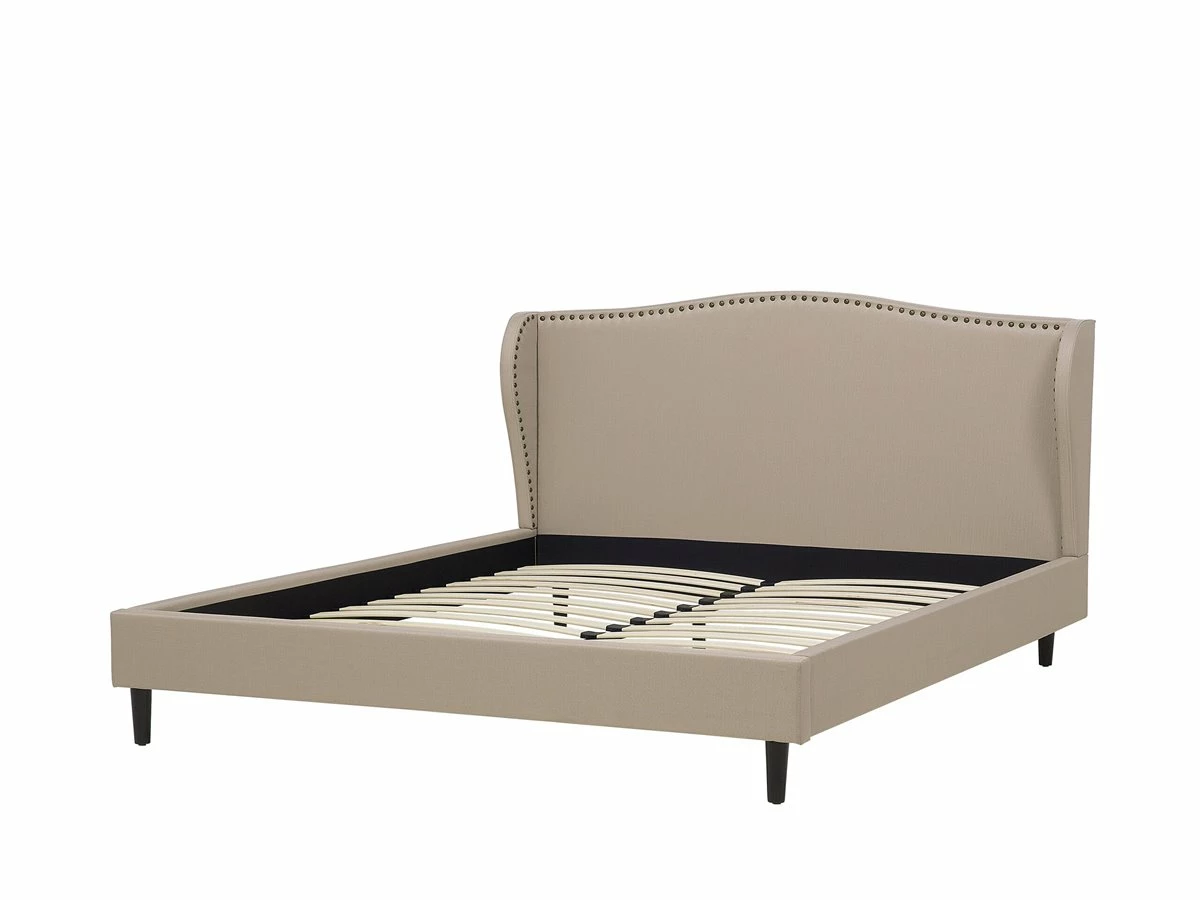 Cama de diseño tradicional. Añade comodidad a tu dormitorio con esta cama con somier. Está fabricada a partir de tela de poliéster de alta calidad y resistente al desgaste. El cabecero de forma curva y las tachuelas decorativas aportan un toque de elegancia. Detalles: Tipo de Producto: Cama matrimonial Estilo: Glamour Color: Negro Tipo de material: Tejido Material principal: Poliéster Material adicional: Madera contrachapada Composición del Material: 100% Poliéster Parte posterior tapizada: No Dimensiones: Dimensiones del reposacabezas: 170×91 Ancho: 170 cm Longitud: 215 cm Altura: 107 cm Superficie para dormir: 160×200 cm Peso: 45 kg Capacidad de peso: 200 kg La oferta incluye: 1 x Estructura de cama, 1 x Somier (26 listones flexibles, No incluye: colchón y ropa de cama Ventajas: Espaciosa superficie para dormir, Diseño tradicional con un toque moderno, Materiales de la más alta calidad, Estructura duradera y sólida, Detalles perfectos Información de montaje: Requiere montaje completo. 20-40 min. Información adicional: La altura del colchón visible en la imagen es de 20 cm. Consejos de mantenimiento: Poliéster: 1.Limpiar con champú seco y una esponja húmeda o un limpiador suave 2.Aspire con un accesorio adecuado. Madera: 1.Seque inmediatamente después de limpiar. para evitar que se acumule agua en los muebles 2.Limpie con un limpiador y un paño suave en la dirección del grano 3.Los muebles con acabado de aceite deben engrasarse una vez al año