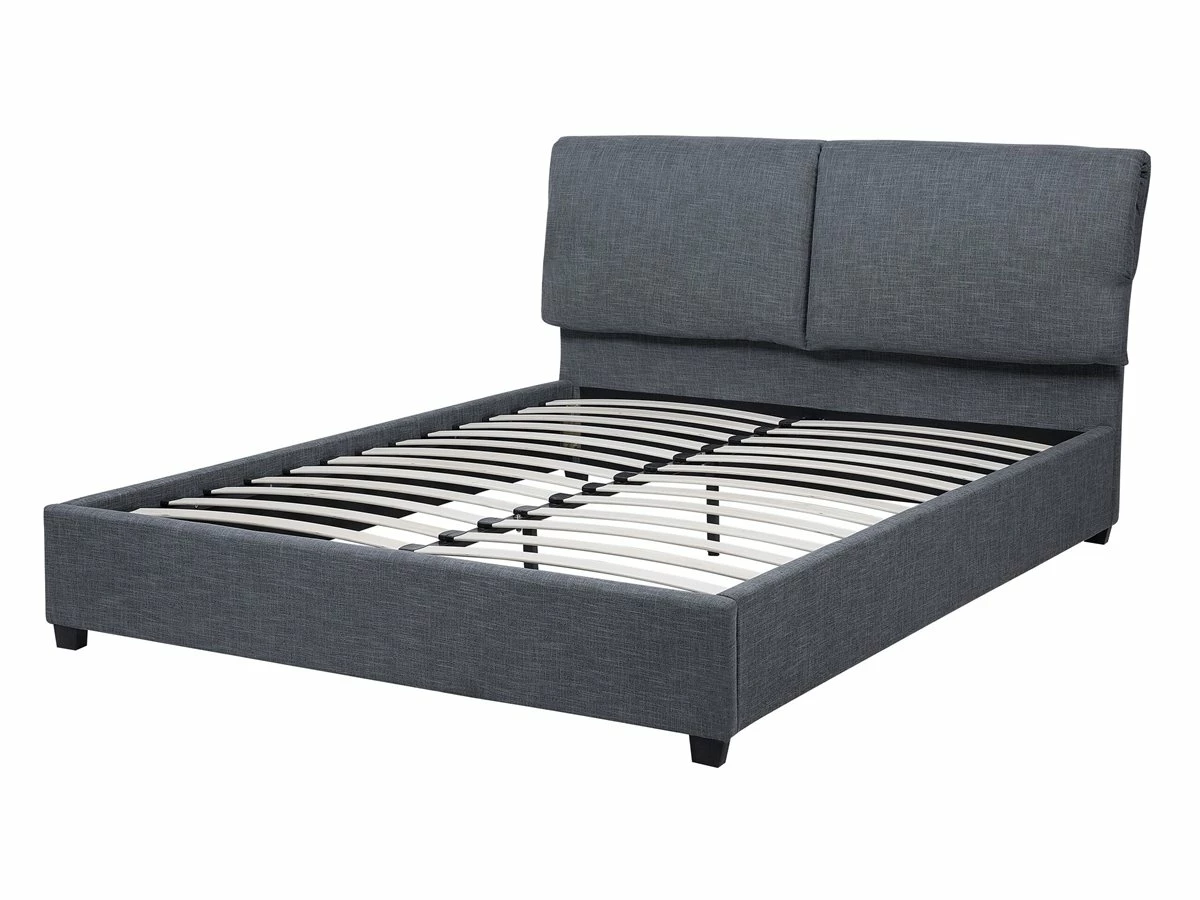 Cama de diseño moderno. Añade un toque acogedor a tu dormitorio con esta cama con somier. Está fabricada a partir de tela de poliéster de alta calidad y suave al tacto. El somier de listones garantiza un sueño saludable y una distribución uniforme del peso. El cabecero acolchado proporciona la máxima comodidad. Combina bien con cualquier interior moderno, contemporáneo o tradicional. Detalles: Tipo de Producto: Cama matrimonial Estilo: Moderno Color: Gris Tonalidad: Gris oscuro Tipo de material: Tejido Material principal: Poliéster Material adicional: Madera contrachapada Composición del Material: 85% Poliéster Parte posterior tapizada: No Dimensiones: Dimensiones del reposacabezas: 151×94 Ancho: 151 cm Longitud: 212 cm Altura: 100 cm Superficie para dormir: 140×200 cm Peso: 35 kg Capacidad de peso: 360 kg La oferta incluye: 1 x Estructura de cama, 1 x Somier (26 listones flexibles, 1 x Cabecero, No incluye: colchón y ropa de cama Ventajas: Combina con cualquier estilo de interior, Diseño moderno, Materiales de la más alta calidad, Fabricación sólida y precisa, Mantenimiento sencillo Información de montaje: Requiere montaje completo. 45-60 min. Información adicional: La altura del colchón visible en la imagen es de 20 cm. Consejos de mantenimiento: Poliéster: 1.Aspire con un accesorio adecuado 2.Limpiar con champú seco y una esponja húmeda o un limpiador suave. Madera: 1.Los muebles con acabado de aceite deben engrasarse una vez al año, 2.Seque inmediatamente después de limpiar. para evitar que se acumule agua en los muebles 3.Limpie con un limpiador y un paño suave en la dirección del grano.