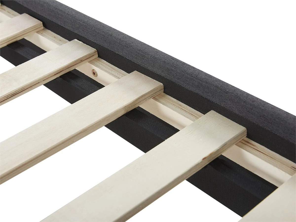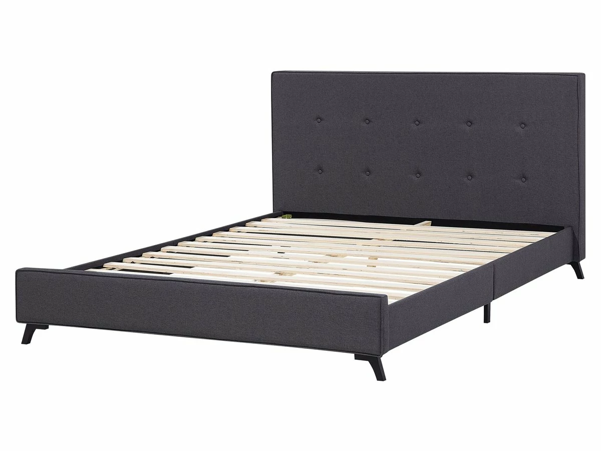 Cama de diseño moderno. Añade a tu dormitorio esta cama con somier inspirada en el diseño escandinavo. Está fabricada a partir de tela de poliéster de alta calidad y suave al tacto. La estructura y las patas de madera ofrecen estabilidad y comodidad. Los botones decorativos aportan un cierto toque sofisticado al estilo. Detalles: Tipo de Producto: Cama matrimonial Estilo: Tradicional Color: Gris Tonalidad: Gris oscuro Tipo de material: Tejido Material principal: Poliéster Material adicional: Madera de caucho Composición del Material: 100% Poliéster Parte posterior tapizada: No Dimensiones: Dimensiones del reposacabezas: 172×96 Ancho: 172 cm Longitud: 216 cm Altura: 106 cm Superficie para dormir: 160×200 cm Peso: 45 kg Capacidad de peso: 200 kg La oferta incluye: 1 x Somier de láminas (26 listones curvados, 1 x Estructura de cama, No incluye: colchón y ropa de cama Ventajas: Apto para cualquier tipo de colchón, Diseño atemporal, Combina con todo tipo de decoración, Acolchado de alta calidad, Estructura duradera y sólida Información de montaje: Requiere montaje completo. 20-40 min. Información adicional: La altura del colchón visible en la imagen es de 20 cm. Consejos de mantenimiento: Poliéster: 1.Aspire con un accesorio adecuado 2.Limpiar con champú seco y una esponja húmeda o un limpiador suave. Madera: 1.Los muebles con acabado de aceite deben engrasarse una vez al año, 2.Seque inmediatamente después de limpiar. para evitar que se acumule agua en los muebles 3.Limpie con un limpiador y un paño suave en la dirección del grano.