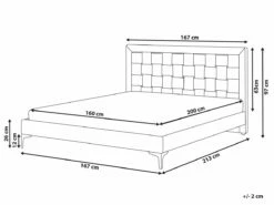 Cama de diseño glamuroso. Añade elegancia a tu dormitorio con esta cama con somier. Está fabricada a partir de terciopelo de alta calidad y suave al tacto. El somier de listones garantiza un sueño reparador y proporciona soporte al colchón. El cabecero de estilo elegante proporciona la máxima comodidad para leer un libro o ver la TV. Detalles: Tipo de Producto: Cama matrimonial Estilo: Moderno Color: Negro Tipo de material: Poliéster aterciopelado Material principal: Terciopelo Material adicional: Madera de pino Composición del Material: 100% Poliéster Parte posterior tapizada: No Dimensiones: Dimensiones del reposacabezas: 167×63 Ancho: 167 cm Longitud: 213 cm Altura: 96 cm Superficie para dormir: 160×200 cm Peso: 39 kg Capacidad de peso: 220 kg La oferta incluye: 1 x Estructura de cama, 1 x Somier (28 listones flexibles, 1 x Cabecero, No incluye: colchón y ropa de cama Ventajas: La base de listones que absorbe los golpes proporciona un soporte perfecto, Diseño elegante, Acolchado de alta calidad, Estructura duradera y sólida, No requiere mantenimiento regular Información de montaje: Requiere montaje completo. 20-40 min. Información adicional: Ten en cuenta que la tela de terciopelo puede presentar un aspecto distinto según la iluminación a la que esté expuesta: tiende a brillar más a la luz del día y a parecer más tenue con luz artificial en interiores. Debido a la estructura suave de alta densidad, la tonalidad puede verse modificada haciendo pasar la mano en distintas direcciones y ángulos. Para igualar el color y eliminar las arrugas, el material debe limpiarse con la palma de mano abierta en una dirección, con un paño húmedo o una plancha con vapor. Consejos de mantenimiento: Terciopelo: 1.Limpiar con champú seco y una esponja húmeda o un limpiador suave 2.Aspire con un accesorio adecuado. Madera maciza: 1.Limpie con un limpiador y un paño suave en la dirección del grano 2.Los muebles con acabado de aceite deben engrasarse una vez al año, 3.Seque inmediatamente después de limpiar. para evitar que se acumule agua en los muebles.