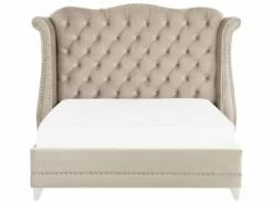 Cama de diseño glamuroso. Añade un toque de elegancia a tu dormitorio con esta cama con somier. Está fabricada a partir de terciopelo de alta calidad. El somier de listones ofrece soporte al colchón y garantiza un flujo de aire adecuado. Los botones decorativos y las tachuelas en el cabecero y el pie de cama aportan una cierta nota de glamour. Detalles: Tipo de Producto: Cama matrimonial Estilo: Glamour Color: Negro Tipo de material: Poliéster aterciopelado Material principal: Terciopelo Material adicional: Madera de pino Composición del Material: 100% Poliéster Parte posterior tapizada: No Dimensiones: Dimensiones del reposacabezas: 185×154 Ancho: 185 cm Longitud: 215 cm Altura: 154 cm Superficie para dormir: 140×200 cm Peso: 56 kg Capacidad de peso: 190 kg La oferta incluye: 1 x Somier (30 listones flexibles, 1 x Estructura de cama, No incluye: colchón y ropa de cama Ventajas: La base de listones que absorbe los golpes proporciona un soporte perfecto, El marco integrado garantiza la máxima estabilización, Apariencia elegante, Fabricación sólida y precisa, Tejido aterciopelado suave como la seda, Mantenimiento sencillo Información de montaje: Requiere montaje completo. 20-40 min. Información adicional: La altura del colchón visible en la imagen es de 20 cm. Tenga en cuenta que la tela de terciopelo puede verse un poco diferente cuando se expone a una iluminación diferente: tiende a brillar más a la luz del día y parece más atenuada en la iluminación artificial interior. Debido a la estructura suave de alta densidad, el tono de la tela de terciopelo también puede variar cuando se pasa la mano en diferentes direcciones y ángulos. Para igualar el color y eliminar las arrugas, el material debe limpiarse con la palma de mano abierta en una dirección, limpiarse con un paño húmedo o una plancha con vapor. Consejos de mantenimiento: Terciopelo: 1.Aspire con un accesorio adecuado 2.Limpiar con champú seco y una esponja húmeda o un limpiador suave.