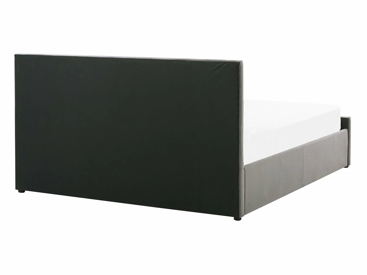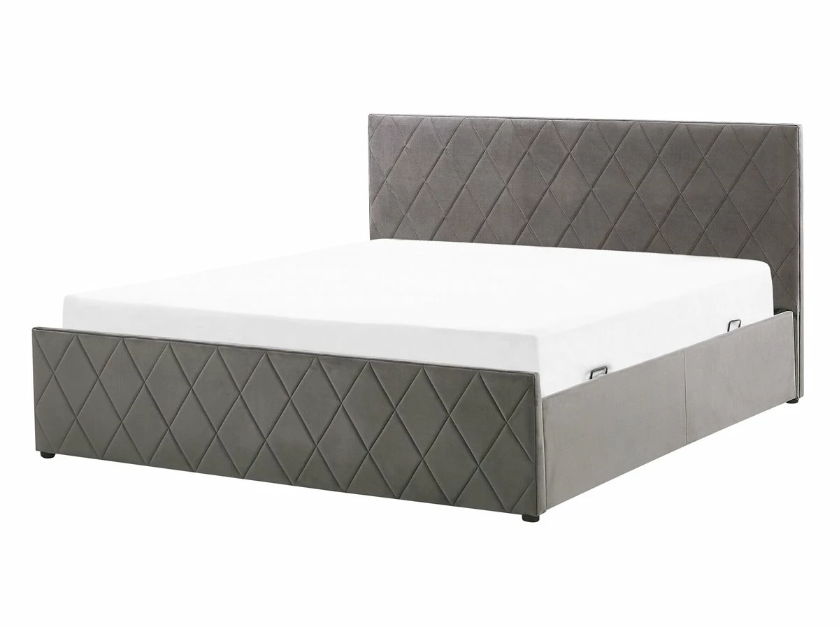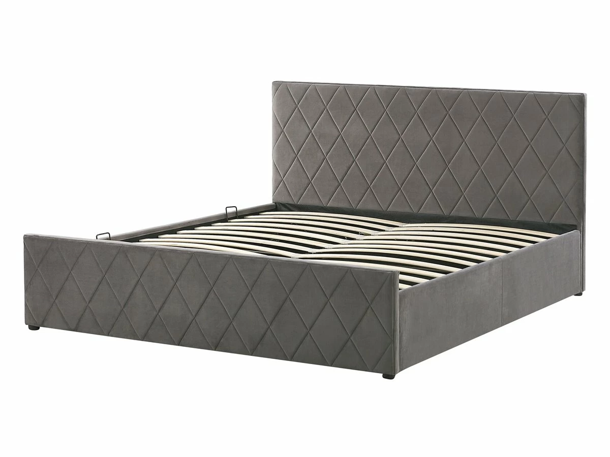 Cama con almacenaje. Añade elegancia y funcionalidad a tu dormitorio con esta cama con somier. Está fabricada a partir de terciopelo de alta calidad. El somier de listones proporciona soporte al colchón. Puedes montarlo para abrir por el lado derecho o izquierdo de la cama. El capitoné decorativo aporta un toque de distinción a cualquier interior. Incluye un amplio espacio de almacenaje donde guardar la ropa de cama. Detalles: Tipo de Producto: Cama matrimonial Estilo: Moderno Color: Gris Tipo de material: Poliéster aterciopelado Material principal: Terciopelo Material adicional: Material sintético Material del almacenamiento: Tela no tejida Composición del Material: 100% Poliéster Parte posterior tapizada: No Tipo de almacenamiento: Elevado Almacenamiento: Sí Dimensiones: Dimensiones del reposacabezas: 150×99 Ancho: 150 cm Dimensiones del almacenamiento: 21x141x200 Longitud: 214 cm Altura: 99 cm Superficie para dormir: 140×200 cm Peso: 50 kg Capacidad de peso: 200 kg La oferta incluye: 1 x Marco de cama con almacenamiento, 1 x Somier (24 listones flexibles, No incluye: colchón y ropa de cama Ventajas: La base de listones que absorbe los golpes proporciona un soporte perfecto, Distribución uniforme del peso corporal, El almacenamiento se puede montar para abrir desde el lado derecho o izquierdo, Espaciosa superficie para dormir, Diseño elegante, Espacio de almacenamiento funcional Información de montaje: Requiere montaje completo. 45-60 min. Información adicional: La altura del colchón visible en la imagen es de 20 cm. Tenga en cuenta que la tela de terciopelo puede verse un poco diferente cuando se expone a una iluminación diferente: tiende a brillar más a la luz del día y parece más atenuada en la iluminación artificial interior. Debido a la estructura suave de alta densidad, el tono de la tela de terciopelo también puede variar cuando se pasa la mano en diferentes direcciones y ángulos. Para igualar el color y eliminar las arrugas, el material debe limpiarse con la palma de mano abierta en una dirección, limpiarse con un paño húmedo o una plancha con vapor. Consejos de mantenimiento: Terciopelo: 1.Aspire con un accesorio adecuado 2.Limpiar con champú seco y una esponja húmeda o un limpiador suave.