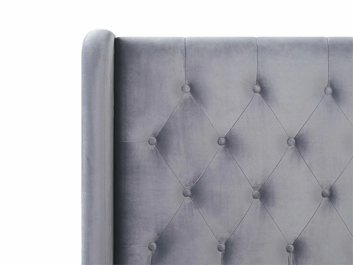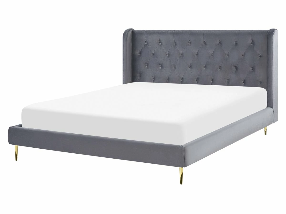 Cama de diseño moderno. Añade un toque de glamour a tu dormitorio con esta cama con somier. Está fabricada a partir de terciopelo de alta calidad y suave al tacto. El somier de listones garantiza un sueño saludable. El tapizado, el cabecero capitoné y las patas de metal llaman poderosamente la atención. Detalles: Tipo de Producto: Cama matrimonial Estilo: Moderno Color: Gris Tipo de material: Poliéster aterciopelado Material principal: Terciopelo Material adicional: Madera contrachapada Composición del Material: 100% Poliéster Parte posterior tapizada: No Dimensiones: Dimensiones del reposacabezas: 174×91 Ancho: 174 cm Longitud: 218 cm Altura: 106 cm Superficie para dormir: 160×200 cm Peso: 50 kg Capacidad de peso: 350 kg La oferta incluye: 1 x Estructura de cama, 1 x Somier (28 listones flexibles, No incluye: colchón y ropa de cama Ventajas: La base de listones que absorbe los golpes proporciona un soporte perfecto, Diseño elegante, Acolchado de alta calidad, No requiere mantenimiento regular, Tejido aterciopelado suave como la seda Información de montaje: Requiere montaje completo. 45-60 min. Información adicional: Tenga en cuenta que la tela de terciopelo puede verse un poco diferente cuando se expone a una iluminación diferente: tiende a brillar más a la luz del día y parece más atenuada en la iluminación artificial interior. Debido a la estructura suave de alta densidad, el tono de la tela de terciopelo también puede variar cuando se pasa la mano en diferentes direcciones y ángulos. Para igualar el color y eliminar las arrugas, el material debe limpiarse con la palma de mano abierta en una dirección, limpiarse con un paño húmedo o una plancha con vapor. Consejos de mantenimiento: Terciopelo: 1.Limpiar con champú seco y una esponja húmeda o un limpiador suave 2.Aspire con un accesorio adecuado.
