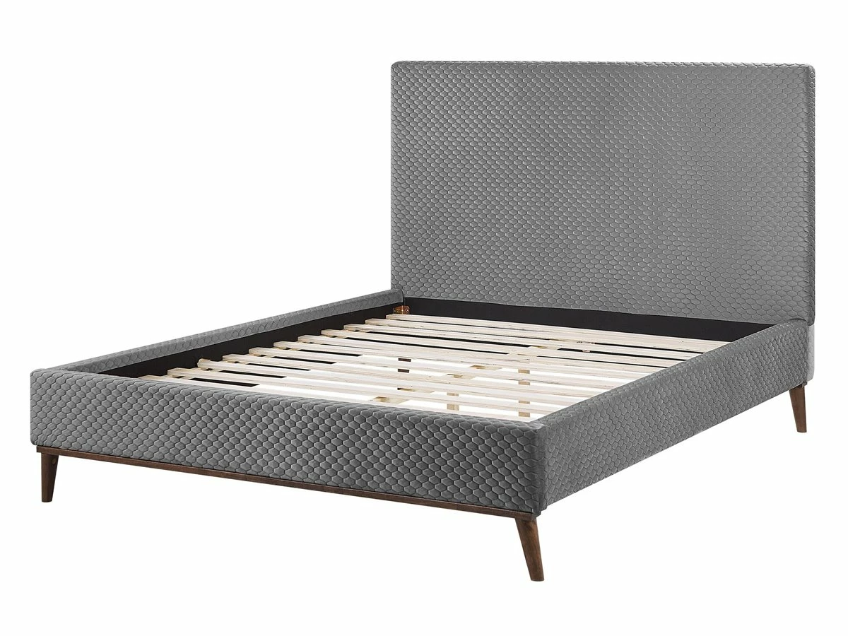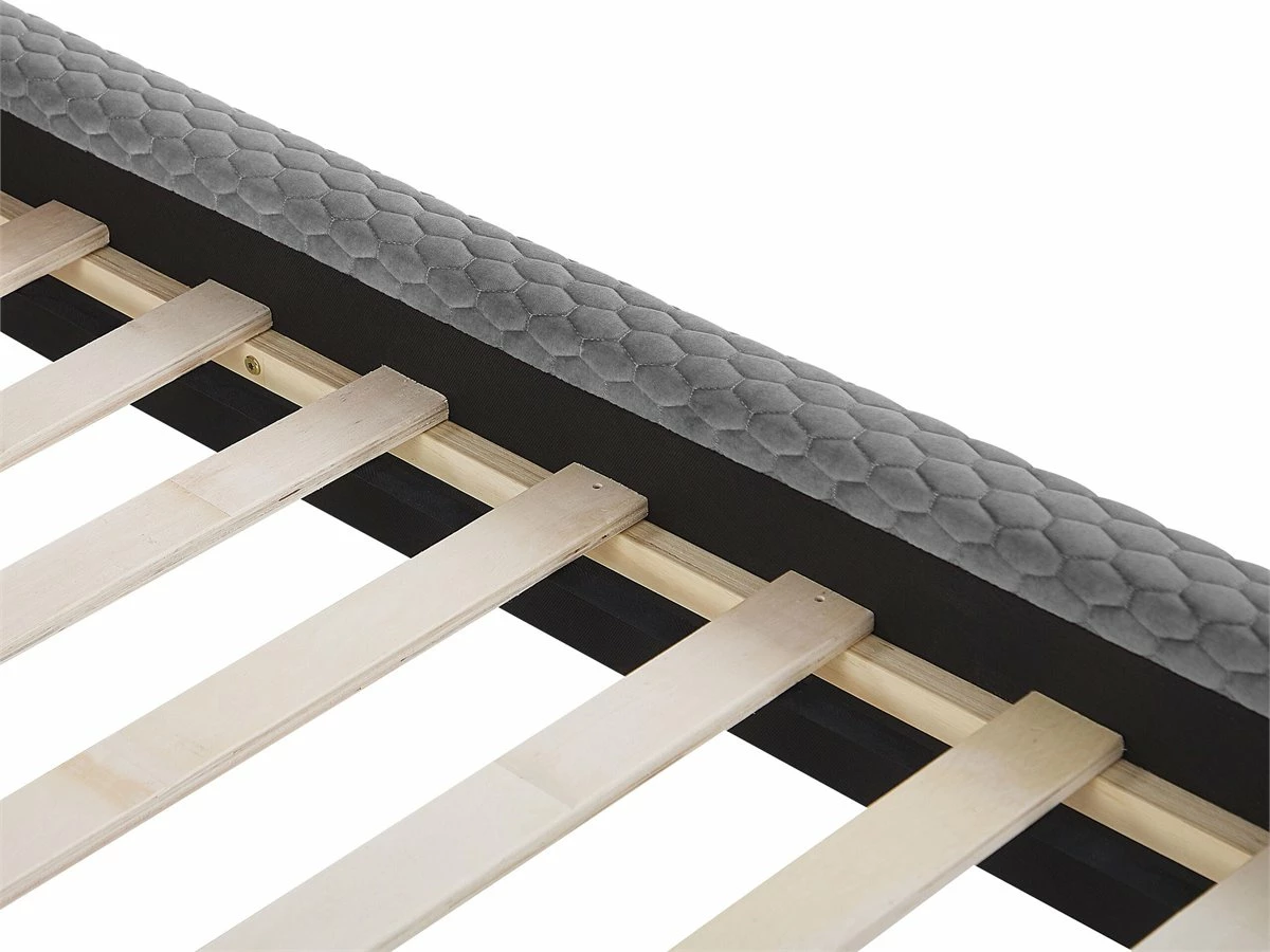 Cama de diseño moderno. Esta cama con somier combina a la perfección en un dormitorio simple o elegante. Está fabricada a partir de terciopelo de alta calidad. El cabecero capitoné y los laterales tapizados encajan en cualquier tipo de decoración. Las patas de madera resistente proporcionan la máxima estabilidad. Detalles: Tipo de Producto: Cama matrimonial Estilo: Retro Color: Gris Tonalidad: Gris claro Tipo de material: Poliéster aterciopelado Material principal: Terciopelo Material adicional: MDF Composición del Material: 100% Poliéster Parte posterior tapizada: No Dimensiones: Dimensiones del reposacabezas: 151×103 Ancho: 151 cm Longitud: 212 cm Altura: 121 cm Superficie para dormir: 140×200 cm Peso: 45 kg Capacidad de peso: 180 kg La oferta incluye: 1 x Estructura de cama, 1 x Somier de láminas (13 listones rectos, No incluye: colchón y ropa de cama Ventajas: Muy cómodo, Diseño elegante, Fabricación sólida y precisa, Detalles perfectos, Mantenimiento sencillo Información de montaje: Requiere montaje completo. 20-40 min. Información adicional: La altura del colchón visible en la imagen es de 20 cm. Tenga en cuenta que la tela de terciopelo puede verse un poco diferente cuando se expone a una iluminación diferente: tiende a brillar más a la luz del día y parece más atenuada en la iluminación artificial interior. Debido a la estructura suave de alta densidad, el tono de la tela de terciopelo también puede variar cuando se pasa la mano en diferentes direcciones y ángulos. Para igualar el color y eliminar las arrugas, el material debe limpiarse con la palma de mano abierta en una dirección, limpiarse con un paño húmedo o una plancha con vapor. Consejos de mantenimiento: Terciopelo: 1.Aspire con un accesorio adecuado 2.Limpiar con champú seco y una esponja húmeda o un limpiador suave. Madera de álamo: 1.Los muebles con acabado de aceite deben engrasarse una vez al año, 2.Seque inmediatamente después de limpiar. para evitar que se acumule agua en los muebles 3.Limpie con un limpiador y un paño suave en la dirección del grano.