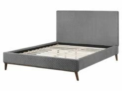 Cama de diseño moderno. Esta cama con somier combina a la perfección en un dormitorio simple o elegante. Está fabricada a partir de terciopelo de alta calidad. El cabecero capitoné y los laterales tapizados encajan en cualquier tipo de decoración. Las patas de madera resistente proporcionan la máxima estabilidad. Detalles: Tipo de Producto: Cama matrimonial Estilo: Retro Color: Gris Tonalidad: Gris claro Tipo de material: Poliéster aterciopelado Material principal: Terciopelo Material adicional: Poliéster Composición del Material: 100% Poliéster Parte posterior tapizada: No Dimensiones: Dimensiones del reposacabezas: 171×103 Ancho: 171 cm Longitud: 212 cm Altura: 121 cm Superficie para dormir: 160×200 cm Peso: 45 kg Capacidad de peso: 200 kg La oferta incluye: 1 x Estructura de cama, 1 x Somier de láminas (13 listones rectos, No incluye: colchón y ropa de cama Ventajas: Muy cómodo, Diseño elegante, Fabricación sólida y precisa, Detalles perfectos, Mantenimiento sencillo Información de montaje: Requiere montaje completo. 20-40 min. Información adicional: La altura del colchón visible en la imagen es de 20 cm. Tenga en cuenta que la tela de terciopelo puede verse un poco diferente cuando se expone a una iluminación diferente: tiende a brillar más a la luz del día y parece más atenuada en la iluminación artificial interior. Debido a la estructura suave de alta densidad, el tono de la tela de terciopelo también puede variar cuando se pasa la mano en diferentes direcciones y ángulos. Para igualar el color y eliminar las arrugas, el material debe limpiarse con la palma de mano abierta en una dirección, limpiarse con un paño húmedo o una plancha con vapor. Consejos de mantenimiento: Terciopelo: 1.Aspire con un accesorio adecuado 2.Limpiar con champú seco y una esponja húmeda o un limpiador suave. Madera de álamo: 1.Seque inmediatamente después de limpiar. para evitar que se acumule agua en los muebles 2.Limpie con un limpiador y un paño suave en la dirección del grano 3.Los muebles con acabado de aceite deben engrasarse una vez al año
