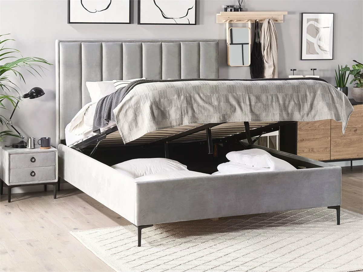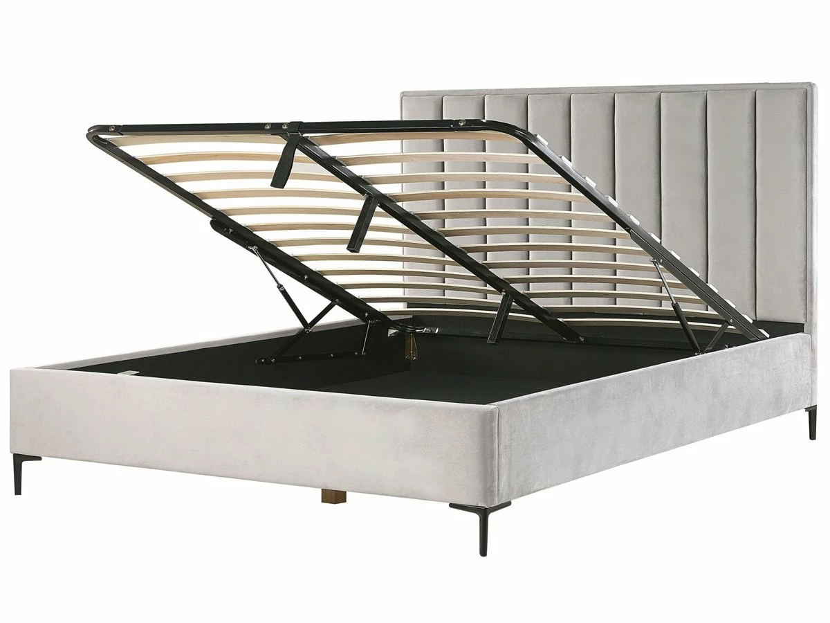 Cama con almacenaje. Añade elegancia a tu dormitorio o suite principal con esta cama con somier. Está fabricada a partir de terciopelo brillante y de alta calidad. El acolchado del cabecero y las patas de metal aportan un toque minimalista. Incluye un amplio espacio de almacenaje donde guardar la ropa de cama. Detalles: Tipo de Producto: Cama matrimonial Estilo: Moderno Color: Azul Tonalidad: Azul marino Tipo de material: Poliéster aterciopelado Material principal: Terciopelo Material adicional: Hierro Material del almacenamiento: Tela no tejida Composición del Material: 100% Poliéster Parte posterior tapizada: No Acabado: Revestimiento en polvo Tipo de almacenamiento: Elevado Almacenamiento: Sí Dimensiones: Dimensiones del reposacabezas: 190×126 Ancho: 190 cm Dimensiones del almacenamiento: 180x200x20 Longitud: 215 cm Altura: 142 cm Superficie para dormir: 180×200 cm Peso: 76 kg Capacidad de peso: 220 kg La oferta incluye: 1 x Marco de cama con almacenamiento, 1 x Somier (24 listones flexibles Ventajas: La base de listones que absorbe los golpes proporciona un soporte perfecto, Diseño elegante, Combina con todo tipo de decoración, Solida estructura, Tejido aterciopelado suave como la seda, Espacio de almacenamiento funcional Información de montaje: Requiere montaje completo. 45-60 min. Información adicional: El grosor del colchón para la cama inferior no deberá ser mayor a 20 cm. Tenga en cuenta que la tela de terciopelo puede verse un poco diferente cuando se expone a una iluminación diferente: tiende a brillar más a la luz del día y parece más atenuada en la iluminación artificial interior. Debido a la estructura suave de alta densidad, el tono de la tela de terciopelo también puede variar cuando se pasa la mano en diferentes direcciones y ángulos. Para igualar el color y eliminar las arrugas, el material debe limpiarse con la palma de mano abierta en una dirección, limpiarse con un paño húmedo o una plancha con vapor. Consejos de mantenimiento: Terciopelo: 1.Aspire con un accesorio adecuado 2.Limpiar con champú seco y una esponja húmeda o un limpiador suave.