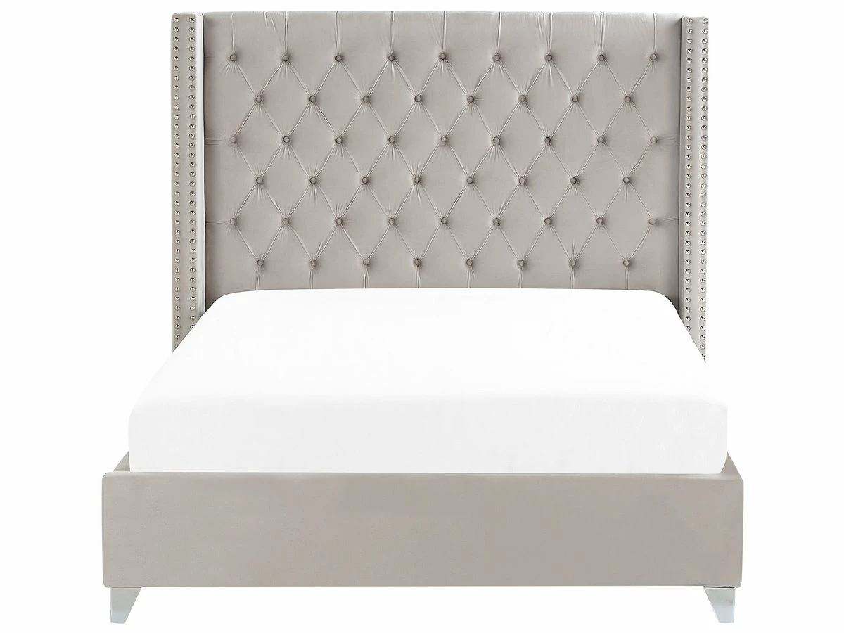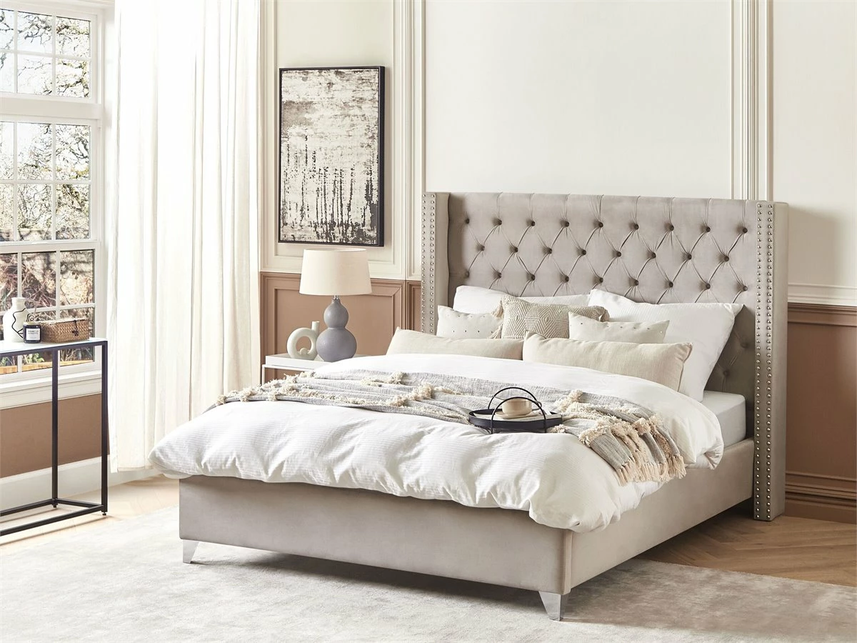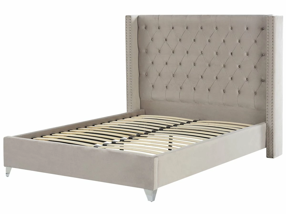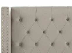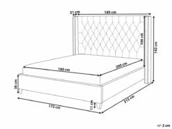 Cama de diseño glamuroso. Añade un toque de glamour a tu dormitorio con esta cama con somier. Está fabricada a partir de terciopelo de alta calidad. Los botones decorativos y las tachuelas en el cabecero combinan bien con las patas de metal. Ideal para interiores retro o contemporáneos. Detalles: Tipo de Producto: Cama matrimonial Estilo: Retro Color: Rosa Tonalidad: Rosa pastel Tipo de material: Poliéster aterciopelado Material principal: Terciopelo Material adicional: Madera de pino Composición del Material: 100% Poliéster Parte posterior tapizada: No Dimensiones: Dimensiones del reposacabezas: 189×142 Ancho: 189 cm Longitud: 215 cm Altura: 142 cm Superficie para dormir: 160×200 cm Peso: 53 kg Capacidad de peso: 250 kg La oferta incluye: 1 x Somier (30 listones flexibles, 1 x Estructura de cama, No incluye: colchón y ropa de cama Ventajas: La base de listones que absorbe los golpes proporciona un soporte perfecto, Elegante pieza decorativa, Acabado con remaches que enfatizan la forma del mueble, Combinación perfecta de colores y materiales, Estructura duradera y sólida, Completamente tapizado Información de montaje: Requiere montaje completo. 20-40 min. Información adicional: La altura del colchón visible en la imagen es de 20 cm. Tenga en cuenta que la tela de terciopelo puede verse un poco diferente cuando se expone a una iluminación diferente: tiende a brillar más a la luz del día y parece más atenuada en la iluminación artificial interior. Debido a la estructura suave de alta densidad, el tono de la tela de terciopelo también puede variar cuando se pasa la mano en diferentes direcciones y ángulos. Para igualar el color y eliminar las arrugas, el material debe limpiarse con la palma de mano abierta en una dirección, limpiarse con un paño húmedo o una plancha con vapor. Consejos de mantenimiento: Terciopelo: 1.Aspire con un accesorio adecuado 2.Limpiar con champú seco y una esponja húmeda o un limpiador suave.