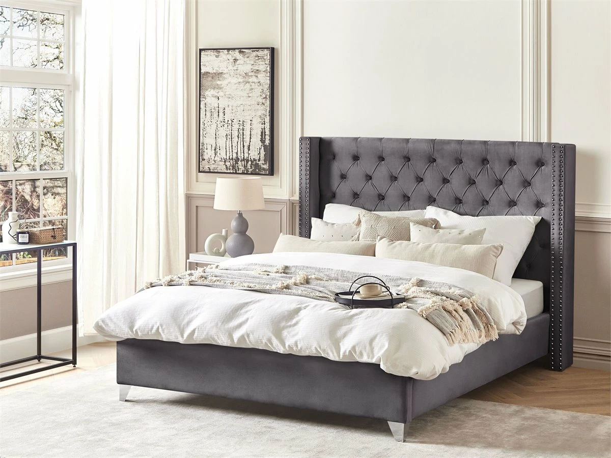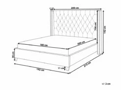 Cama de diseño glamuroso. Añade un toque de glamour a tu dormitorio con esta cama con somier. Está fabricada a partir de terciopelo de alta calidad. Los botones decorativos y las tachuelas en el cabecero combinan bien con las patas de metal. Ideal para interiores retro o contemporáneos. Detalles: Tipo de Producto: Cama matrimonial Estilo: Retro Color: Rosa Tonalidad: Rosa pastel Tipo de material: Poliéster aterciopelado Material principal: Terciopelo Material adicional: Madera de pino Composición del Material: 100% Poliéster Parte posterior tapizada: No Dimensiones: Dimensiones del reposacabezas: 209×142 Ancho: 209 cm Longitud: 215 cm Altura: 142 cm Superficie para dormir: 180×200 cm Peso: 61 kg Capacidad de peso: 300 kg La oferta incluye: 1 x Somier (45 listones flexibles, 1 x Estructura de cama, No incluye: colchón y ropa de cama Ventajas: La base de listones que absorbe los golpes proporciona un soporte perfecto, Elegante pieza decorativa, Acabado con remaches que enfatizan la forma del mueble, Combinación perfecta de colores y materiales, Estructura duradera y sólida, Completamente tapizado Información de montaje: Requiere montaje completo. 20-40 min. Información adicional: La altura del colchón visible en la imagen es de 20 cm. Tenga en cuenta que la tela de terciopelo puede verse un poco diferente cuando se expone a una iluminación diferente: tiende a brillar más a la luz del día y parece más atenuada en la iluminación artificial interior. Debido a la estructura suave de alta densidad, el tono de la tela de terciopelo también puede variar cuando se pasa la mano en diferentes direcciones y ángulos. Para igualar el color y eliminar las arrugas, el material debe limpiarse con la palma de mano abierta en una dirección, limpiarse con un paño húmedo o una plancha con vapor. Consejos de mantenimiento: Terciopelo: 1.Limpiar con champú seco y una esponja húmeda o un limpiador suave 2.Aspire con un accesorio adecuado.