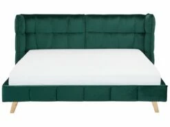 Cama de diseño moderno. Añade un toque acogedor a tu dormitorio con esta cama con somier. Está fabricada a partir de terciopelo de alta calidad. El patrón decorativo en la estructura aporta un cierto glamour. El cabecero acolchado proporciona la máxima comodidad. Detalles: Tipo de Producto: Cama matrimonial Estilo: Glamour Color: Verde Tonalidad: Verde oscuro Tipo de material: Poliéster aterciopelado Material principal: Terciopelo Material adicional: Madera contrachapada Composición del Material: 100% Poliéster Parte posterior tapizada: No Dimensiones: Dimensiones del reposacabezas: 254×87 Ancho: 254 cm Longitud: 220 cm Altura: 100 cm Superficie para dormir: 180×200 cm Peso: 45 kg Capacidad de peso: 250 kg La oferta incluye: 1 x Estructura de cama, 1 x Somier (39 listones flexibles, No incluye: colchón y ropa de cama Ventajas: La base de listones que absorbe los golpes proporciona un soporte perfecto, Diseño elegante, Con un clásico mechón decorativo, Materiales de la más alta calidad, Tejido aterciopelado suave como la seda Información de montaje: Requiere montaje completo. 45-60 min. Información adicional: La altura del colchón visible en la imagen es de 20 cm. Tenga en cuenta que la tela de terciopelo puede verse un poco diferente cuando se expone a una iluminación diferente: tiende a brillar más a la luz del día y parece más atenuada en la iluminación artificial interior. Debido a la estructura suave de alta densidad, el tono de la tela de terciopelo también puede variar cuando se pasa la mano en diferentes direcciones y ángulos. Para igualar el color y eliminar las arrugas, el material debe limpiarse con la palma de mano abierta en una dirección, limpiarse con un paño húmedo o una plancha con vapor. Consejos de mantenimiento: Terciopelo: 1.Aspire con un accesorio adecuado 2.Limpiar con champú seco y una esponja húmeda o un limpiador suave. Madera de abedul: 1.Los muebles con acabado de aceite deben engrasarse una vez al año, 2.Seque inmediatamente después de limpiar. para evitar que se acumule agua en los muebles 3.Limpie con un limpiador y un paño suave en la dirección del grano.