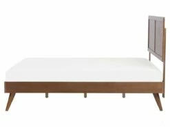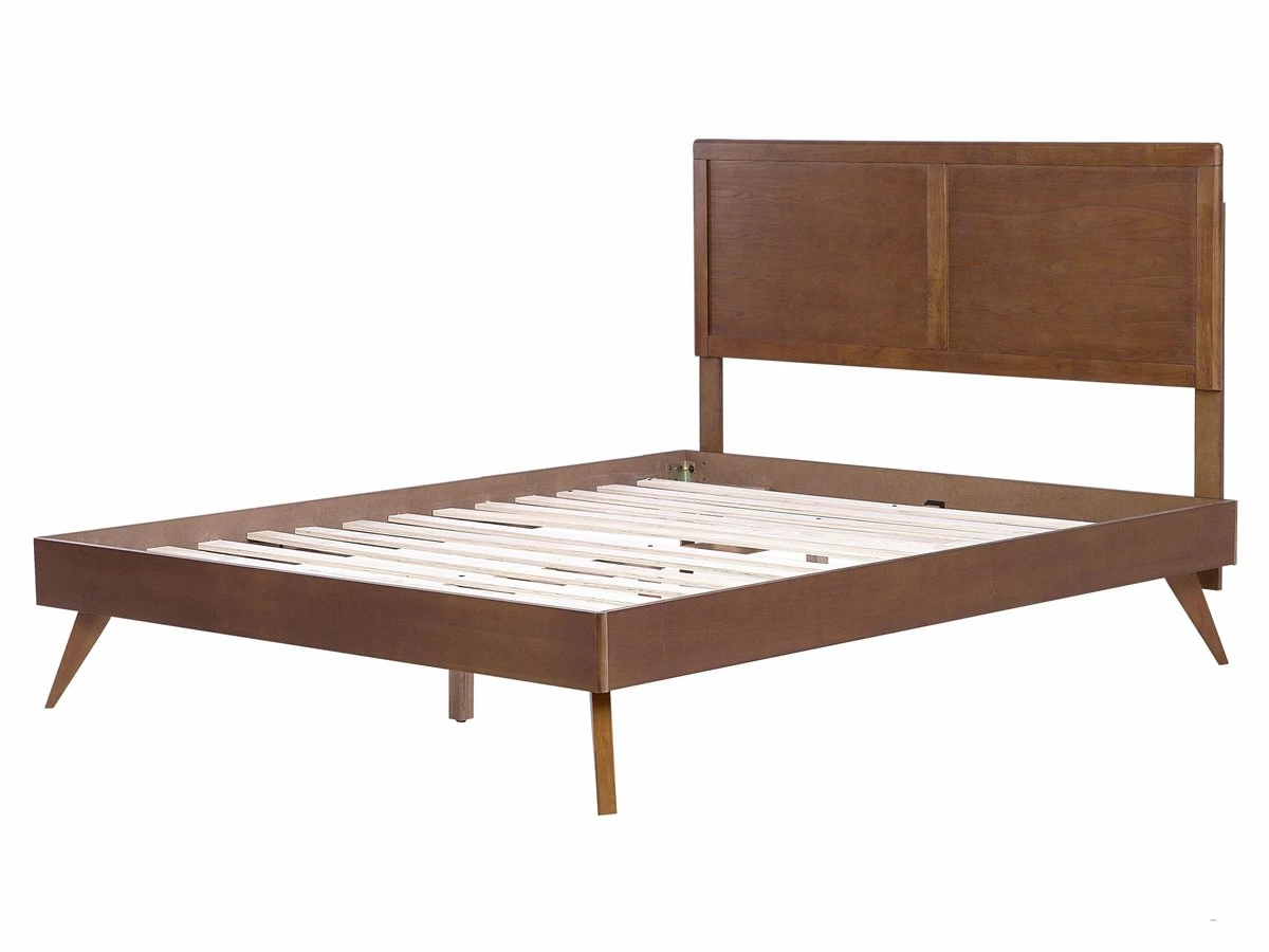 Cama de diseño moderno. Esta cama con somier de diseño clásico combina bien con cualquier dormitorio tradicional, minimalista o escandinavo. Está fabricada a partir de madera de caucho de alta calidad. El somier de listones garantiza un sueño saludable y una distribución uniforme del peso corporal. El acabado natural aporta un aspecto rústico al diseño. Detalles: Tipo de Producto: Cama matrimonial Estilo: Retro Color: Madera oscura Tipo de material: Derivado de madera Material principal: MDF Material adicional: Madera de caucho Parte posterior tapizada: No Acabado: Aceitado Dimensiones: Dimensiones del reposacabezas: 167×57 Ancho: 169 cm Longitud: 205 cm Altura: 149 cm Superficie para dormir: 160×200 cm Peso: 54 kg Capacidad de peso: 270 kg La oferta incluye: 1 x Somier de láminas (26 listones curvados, 1 x Estructura de cama, 1 x Cabecero, No incluye: colchón y ropa de cama Ventajas: La base de listones que absorbe los golpes proporciona un soporte perfecto, Distribución uniforme del peso corporal, Diseño moderno, Los nudos y vetas de madera natural hacen que cada pieza sea única, Estructura duradera y sólida Información de montaje: Requiere montaje completo. 45-60 min. Información adicional: La altura del colchón visible en la imagen es de 20 cm. Consejos de mantenimiento: MDF: 1.Limpiar con un limpiador suave y un paño suave. Secar después de limpiar. Madera de caucho: 1.Seque inmediatamente después de limpiar. para evitar que se acumule agua en los muebles 2.Limpie con un limpiador y un paño suave en la dirección del grano 3.Los muebles con acabado de aceite deben engrasarse una vez al año