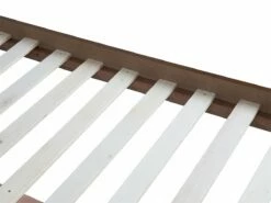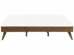 Cama de estilo minimalista. Esta cama con somier de estilo minimalista aporta un toque de modernidad a cualquier dormitorio. La estructura de MDF de aspecto natural y acabado en madera combina bien con un diseño escandinavo o rústico. Diseñada sin cabecero, es la solución ideal para habitaciones de techos bajos o buhardillas. Detalles: Tipo de Producto: Cama matrimonial Estilo: Retro Color: Madera oscura Tipo de material: Derivado de madera Material principal: MDF Material adicional: Madera de caucho Parte posterior tapizada: No Acabado: Chapa de madera Dimensiones: Ancho: 187 cm Longitud: 202 cm Altura: 38 cm Superficie para dormir: 180×200 cm Peso: 43 kg Capacidad de peso: 270 kg La oferta incluye: 1 x Somier de láminas (13 listones curvados, 1 x Estructura de cama, No incluye: colchón y ropa de cama Ventajas: Apto para cualquier tipo de colchón, Combina con todo tipo de decoración, Estilo retro, Materiales de calidad, Construcción muy estable Información de montaje: Requiere montaje completo. 45-60 min. Información adicional: La altura del colchón visible en la imagen es de 20 cm. Consejos de mantenimiento: MDF: 1.Limpiar con un limpiador suave y un paño suave. Secar después de limpiar. Madera de caucho: 1.Limpie con un limpiador y un paño suave en la dirección del grano 2.Los muebles con acabado de aceite deben engrasarse una vez al año, 3.Seque inmediatamente después de limpiar. para evitar que se acumule agua en los muebles.