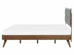 Cama de diseño moderno. Esta cama con somier combina a la perfección con cualquier dormitorio de estilo moderno o rústico. Está fabricada a partir de MDF de alta calidad. El somier de listones garantiza un sueño saludable y una distribución uniforme del peso corporal. El acolchado del cabecero ofrece la mayor comodidad para leer un libro o ver la TV. Detalles: Tipo de Producto: Cama matrimonial Estilo: Retro Color: Gris Tipo de material: Derivado de madera Material principal: MDF Material adicional: Poliéster Composición del Material: 100% Poliéster Parte posterior tapizada: No Acabado: Aceitado Dimensiones: Dimensiones del reposacabezas: 155×57 Ancho: 167 cm Longitud: 202 cm Altura: 95 cm Superficie para dormir: 160×200 cm Peso: 54 kg Capacidad de peso: 270 kg La oferta incluye: 1 x Somier de láminas (26 listones curvados, 1 x Estructura de cama, 1 x Cabecero, No incluye: colchón y ropa de cama Ventajas: La base de listones que absorbe los golpes proporciona un soporte perfecto, El marco integrado garantiza la máxima estabilización, Los nudos y vetas de madera natural hacen que cada pieza sea única, Materiales de calidad, Fabricación sólida y precisa Información de montaje: Requiere montaje completo. 45-60 min. Información adicional: La altura del colchón visible en la imagen es de 20 cm. Consejos de mantenimiento: MDF: 1.Limpiar con un limpiador suave y un paño suave. Secar después de limpiar. Madera de caucho: 1.Los muebles con acabado de aceite deben engrasarse una vez al año, 2.Seque inmediatamente después de limpiar. para evitar que se acumule agua en los muebles 3.Limpie con un limpiador y un paño suave en la dirección del grano.