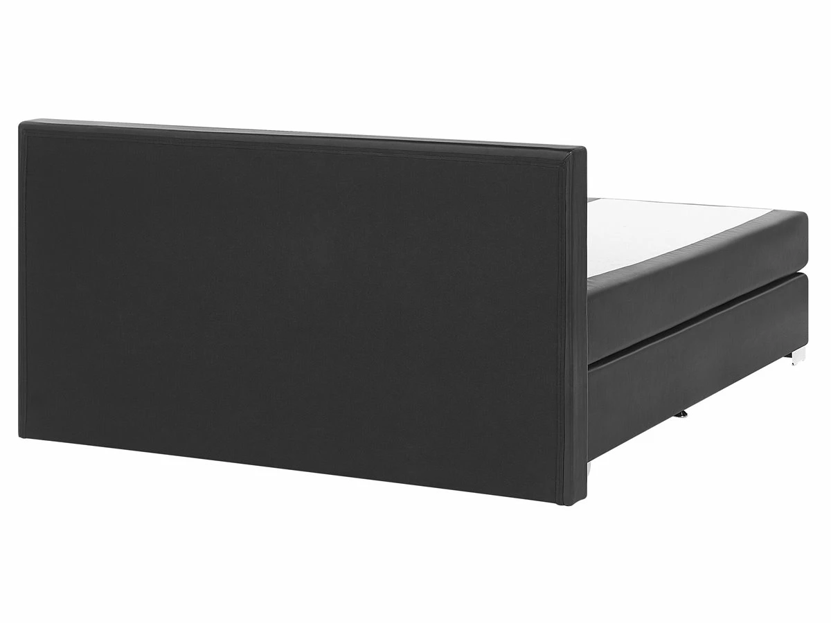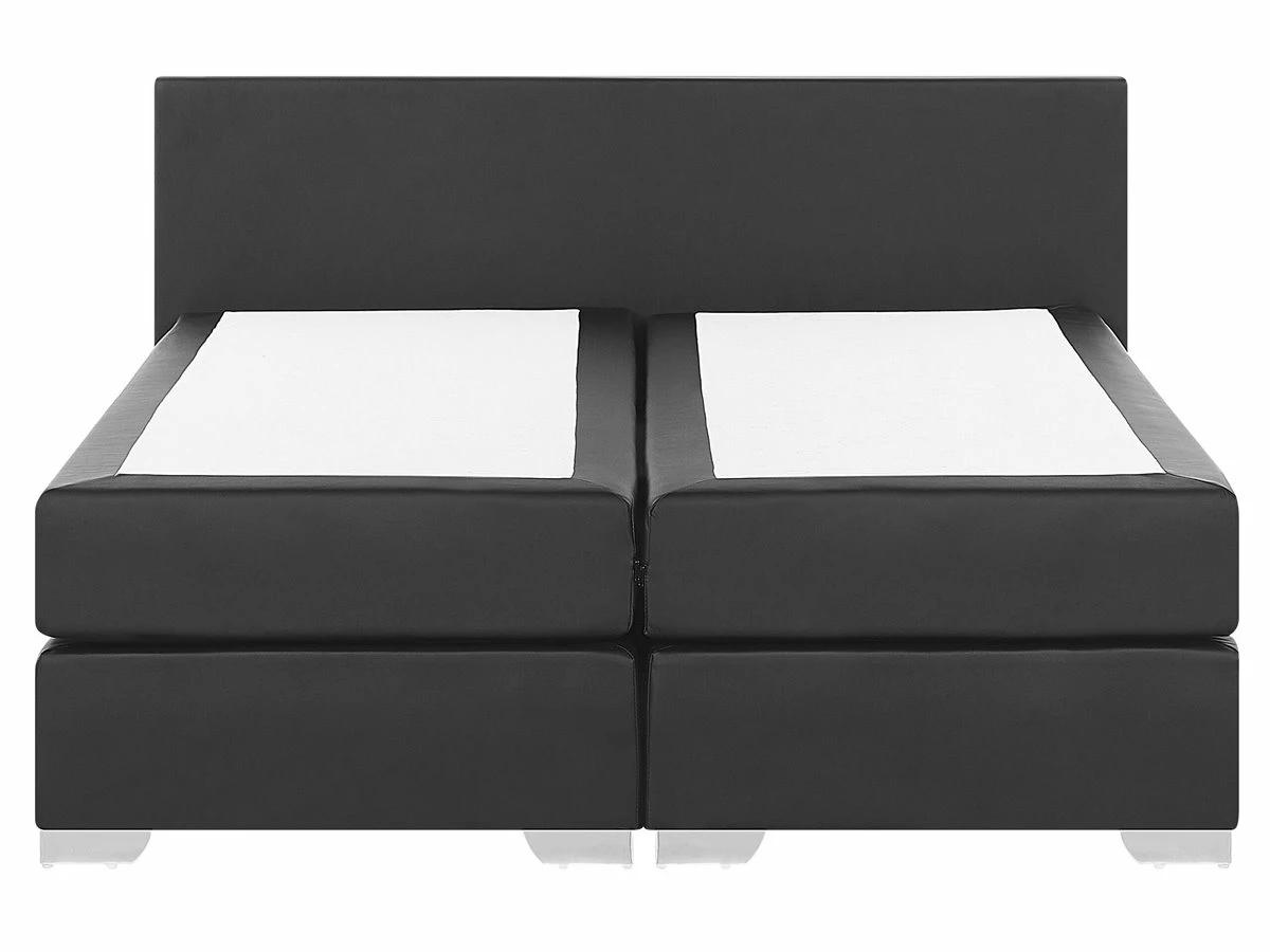 Cama de diseño moderno. Esta cama continental encaja en cualquier dormitorio o suite principal de estilo moderno o tradicional. Está fabricada a partir de piel sintética de alta calidad. La estructura de madera maciza proporciona soporte al colchón de muelles embolsados. El diseño simple de las patas combina bien con el tapizado. Detalles: Tipo de Producto: Cama continental Estilo: Moderno Color: Negro Tipo de material: Piel sintética Material principal: Piel sintética Material adicional: Madera contrachapada Composición del Material: 100% Piel ecológica Parte posterior tapizada: No Dimensiones: Dimensiones del reposacabezas: 170×90 Ancho: 170 cm Longitud: 210 cm Altura: 90 cm Superficie para dormir: 160×200 cm Peso: 111 kg Capacidad de peso: 300 kg La oferta incluye: 2 x Colchón de muelles, 1 x Cabecero, 2 x Colchón de muelles, No incluye: ropa de cama Ventajas: Distribución uniforme del peso corporal, Sistema de muelles embolsados en espuma de poliuretano y 5 zonas de resistencia, Colchón sólido (firmeza H2, media, Espaciosa superficie para dormir, Diseño clásico, Soporta de forma óptima la espina vertebral Información de montaje: Requiere montaje parcial. 45-60 min. Consejos de mantenimiento: Piel sintética: 1.Limpie con agua destilada y use limpiadores a base de jabón en las manchas difíciles 2.Aspire con un accesorio adecuado 3.Una vez a la semana, limpie con un paño húmedo y seque después. No engrasar, 4.Use solo limpiadores suaves y acondicionadores dedicados a la piel sintética Madera contrachapada: 1.Limpiar con un limpiador suave y un paño suave. Secar después de limpiar.
