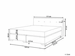 Cama de estilo minimalista. Añade un toque acogedor a tu dormitorio con esta cama continental. Está fabricada a partir de terciopelo de alta calidad. Las 2 bases y el colchón de muelles garantizan la máxima firmeza. Las líneas limpias, el diseño contemporáneo y los botones decorativos en el cabecero encajan bien en un interior moderno o tradicional. Detalles: Tipo de Producto: Cama continental Estilo: Moderno Color: Beige Tonalidad: Beige claro Tipo de material: Poliéster aterciopelado Material principal: Terciopelo Material adicional: Madera de pino Composición del Material: 100% Poliéster Parte posterior tapizada: No Dimensiones: Dimensiones del reposacabezas: 171×91 Ancho: 171 cm Longitud: 212 cm Altura: 91 cm Superficie para dormir: 160×200 cm Peso: 101 kg Capacidad de peso: 200 kg La oferta incluye: 2 x Colchón de muelles, 1 x Cabecero, 1 x Colchón, No incluye: cubrecolchón Ventajas: El marco integrado garantiza la máxima estabilización, Espaciosa superficie para dormir, Diseño clásico, Acolchado de alta calidad, Muy fácil de conservar Información de montaje: Requiere montaje completo. 45-60 min. Información adicional: Tenga en cuenta que la tela de terciopelo puede verse un poco diferente cuando se expone a una iluminación diferente: tiende a brillar más a la luz del día y parece más atenuada en la iluminación artificial interior. Debido a la estructura suave de alta densidad, el tono de la tela de terciopelo también puede variar cuando se pasa la mano en diferentes direcciones y ángulos. Para igualar el color y eliminar las arrugas, el material debe limpiarse con la palma de mano abierta en una dirección, limpiarse con un paño húmedo o una plancha con vapor. Consejos de mantenimiento: Terciopelo: 1.Limpiar con champú seco y una esponja húmeda o un limpiador suave 2.Aspire con un accesorio adecuado.