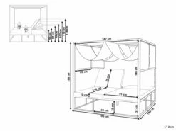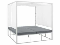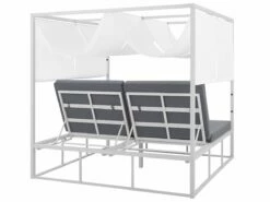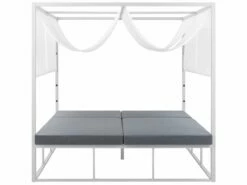Cama con dosel. Prepárate para el mejor descanso al aire libre. Esta cama con dosel de tela y asientos para 2 personas es el lugar de relajación perfecto durante el verano, en el jardín o junto a la piscina. Con capacidad para 2 personas, los respaldos de las tumbonas son reclinables, permitiendo disfrutar del tiempo. La cubierta blanca y ajustable difunde la luz del sol, favoreciendo al descanso prolongado. El marco de aluminio es resistente al agua y al óxido, combinando a la perfección con las fundas de cojines de poliéster, que no dejan pasar los rayos UV o el agua. Detalles: Tipo de Producto: Cama de playa Estilo: Moderno Color: Blanco Tipo de material: Metal Material principal: Aluminio Material adicional: Poliéster Composición del Material: 100% Poliéster Acabado: Revestimiento en polvo Dimensiones: Profundidad: 196 cm Espesor del asiento: 10 cm Altura del asiento: 51 cm Ancho: 195 cm Altura: 196 cm Superficie del asiento: 182×196 cm Peso: 65 kg Capacidad de peso por persona: 150 kg La oferta incluye: 1 x Tumbona, 1 x Dosel desmontable, 2 x Cojín Ventajas: La práctica cubertura brindará protección contra el viento y el sol, Respaldo ajustable en 6 posiciones, Fijación fácil y segura de los cojines gracias a los prácticos cierres de velcro, Extremadamente cómodo, Resistencia UV 6 (ISO 105-B02 Información de montaje: Requiere montaje completo. 45-60 min. Texto de resistencia: Los muebles resistentes a los rayos UV muestran una mayor resistencia a la decoloración. Sin embargo, recomendamos que el producto se guarde en el interior cuando no esté en uso. Esto asegurará la máxima durabilidad de los muebles. Resistencia: Rayos UV Consejos de mantenimiento: Aluminio: 1.Fuera de temporada, utilice una funda protectora o guarde los muebles en un lugar fresco y seco 2.Limpiar con agua jabonosa y detergentes suaves. Quitar el polvo con un paño suave. Poliéster: 1.Lavar a mano o seleccionar un ciclo de lavado de lana (30 ° C, a menos que el fabricante especifique lo contrario. Lavar del revés con la cremallera cerrada 2.Cuando no esté en uso, manténgalo en un lugar limpio y seco para protegerlo de las condiciones atmosféricas 3.No secar en secadora y no planchar.