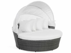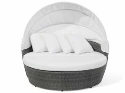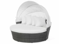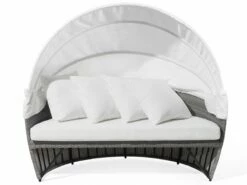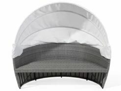 Cama de ratán convertible en sofá. Esta cama de exterior combina construcción resistente con diseño elegante. Aprovecha su versatilidad y conviértela en un sofá, retirando la mesa de centro y guardándola en su interior. Los cojines suaves aportan la máxima comodidad. El dosel retráctil ofrece una sombra refrescante. Detalles: Tipo de Producto: Cama de playa Estilo: Tradicional Color: Gris Tonalidad: Blanco crema Tipo de material: Ratán sintético Material principal: Ratán sintético Material adicional: Vidrio templado Composición del Material: 80% Algodón Densidad de espuma del asiento: 22 kg/m3 Dimensiones: Dimensiones de la mesa de centro: 90x30x27 Profundidad: 150 cm Espesor del asiento: 10 cm Altura del asiento: 43 cm Ancho: 158 cm Altura: 138 cm Superficie del asiento: 150×148 cm Peso: 34 kg Capacidad de peso por persona: 150 kg La oferta incluye: 1 x Tumbona, 1 x Puf, 1 x Mesa, 4 x Cojín del respaldo, 2 x Cojines del asiento Ventajas: Brinda comodidad y relajación, Perfecto para todo tipo de exterior, Fabricación sólida y precisa, Muy fácil de conservar, Resistencia UV 5 (ISO 105-B02, Estructura sólida y estable, Fundas extraíbles Información de montaje: No requiere montaje Información adicional: El producto viene con un libro de cuidados detallado para ayudarte a mantener tus muebles en las mejores condiciones durante muchos años. Consulta estos consejos para garantizar el mantenimiento adecuado de tus muebles nuevos – encontrarás las instrucciones de mantenimiento junto con el manual de montaje. Texto de resistencia: Gracias a su resistencia al agua, puedes utilizar el producto al aire libre y dejarlo a la intemperie durante lluvias ligeras. Si no es posible guardarlo en un lugar cerrado y protegido, recomendamos utilizar una funda protectora. La exposición prolongada a la humedad puede provocar daños en el mueble. Resistencia: Agua ligera / humedad Consejos de mantenimiento: Ratán sintético: 1.Los utensilios o accesorios de vidrio pueden sobrecalentar la superficie 2.Para alargar la vida útil del mueble, protéjalo de la exposición directa al sol 3.Se recomienda utilizar una funda protectora para la temporada de invierno o, si es posible, para mantener los muebles secos y frescos en el interior 4.Limpiar con detergentes a base de jabón. No utilizar limpiadores químicos corrosivos. Poliéster: 1.Cuando no esté en uso, manténgalo en un lugar limpio y seco para protegerlo de las condiciones atmosféricas 2.No secar en secadora ni planchar 3.Lavar a mano únicamente, usar agua fría y un detergente suave.
