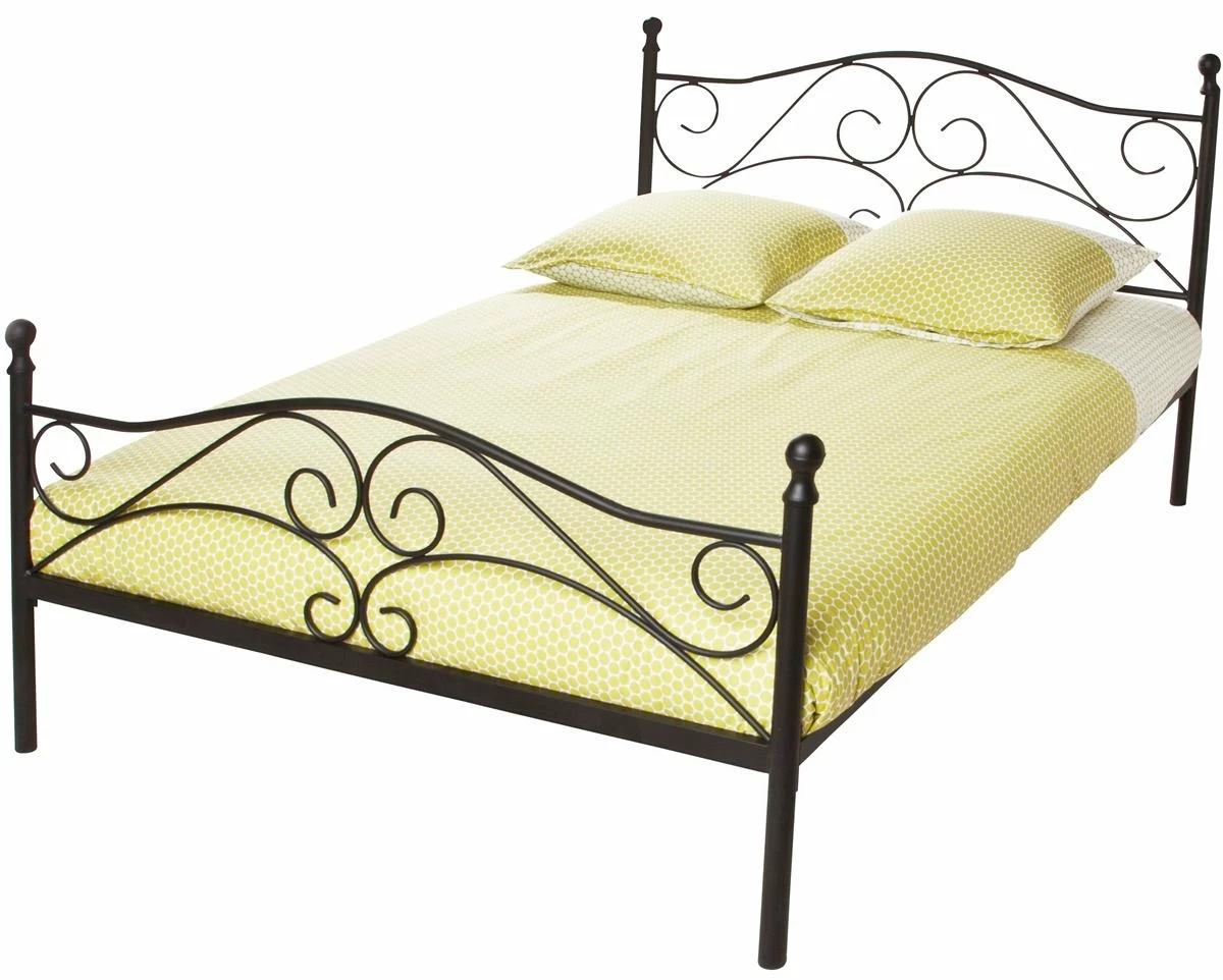 Con la cama AMELIE diseñada en forja podrás dar a tu habitación un estilo romántico y de enseuño. El metal forjado dibujando formas voluptuosas hará que tu dormitorio parezca de cuento. Estructura de metalica de color negra. Para somier de 140x190cm e colchon de 135/140x190cm (colchon y somier não incluídos.