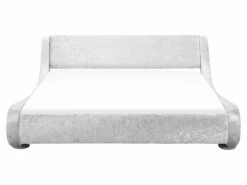 Cama de diseño glamuroso. Añade un toque de modernidad a tu dormitorio con esta cama con somier. Está fabricada a partir de terciopelo de alta calidad y suave al tacto. Las líneas curvas y elegantes aportan elegancia y comodidad. Las patas de metal completan el diseño. Detalles: Tipo de Producto: Cama matrimonial Estilo: Glamour Color: Plateado Tipo de material: Poliéster aterciopelado Material principal: Terciopelo Material adicional: Material sintético Composición del Material: 100% Poliéster Parte posterior tapizada: Sí Dimensiones: Dimensiones del reposacabezas: 180×35 Ancho: 180 cm Longitud: 221 cm Altura: 70 cm Superficie para dormir: 160×200 cm Peso: 48 kg Capacidad de peso: 200 kg La oferta incluye: 1 x Estructura de cama, 1 x Somier (24 listones flexibles, No incluye: colchón y ropa de cama Ventajas: La base de listones que absorbe los golpes proporciona un soporte perfecto, Espaciosa superficie para dormir, Diseño moderno, Construcción muy estable, Completamente tapizado Información de montaje: Requiere montaje completo. 45-60 min. Información adicional: La altura del colchón visible en la imagen es de 20 cm. Tenga en cuenta que la tela de terciopelo puede verse un poco diferente cuando se expone a una iluminación diferente: tiende a brillar más a la luz del día y parece más atenuada en la iluminación artificial interior. Debido a la estructura suave de alta densidad, el tono de la tela de terciopelo también puede variar cuando se pasa la mano en diferentes direcciones y ángulos. Para igualar el color y eliminar las arrugas, el material debe limpiarse con la palma de mano abierta en una dirección, limpiarse con un paño húmedo o una plancha con vapor. Consejos de mantenimiento: Terciopelo: 1.Aspire con un accesorio adecuado 2.Limpiar con champú seco y una esponja húmeda o un limpiador suave.