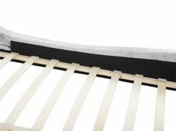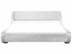 Cama de diseño glamuroso. Añade un toque de modernidad a tu dormitorio con esta cama con somier. Está fabricada a partir de terciopelo de alta calidad y suave al tacto. Las líneas curvas y elegantes aportan elegancia y comodidad. Las patas de metal completan el diseño. Detalles: Tipo de Producto: Cama matrimonial Estilo: Glamour Color: Plateado Tipo de material: Poliéster aterciopelado Material principal: Terciopelo Material adicional: Material sintético Composición del Material: 100% Poliéster Parte posterior tapizada: Sí Dimensiones: Dimensiones del reposacabezas: 200×35 Ancho: 200 cm Longitud: 221 cm Altura: 70 cm Superficie para dormir: 180×200 cm Peso: 51 kg Capacidad de peso: 200 kg La oferta incluye: 1 x Estructura de cama, 1 x Somier (24 listones flexibles, No incluye: colchón y ropa de cama Ventajas: La base de listones que absorbe los golpes proporciona un soporte perfecto, Espaciosa superficie para dormir, Diseño moderno, Construcción muy estable, Completamente tapizado Información de montaje: Requiere montaje completo. 45-60 min. Información adicional: La altura del colchón visible en la imagen es de 20 cm. Tenga en cuenta que la tela de terciopelo puede verse un poco diferente cuando se expone a una iluminación diferente: tiende a brillar más a la luz del día y parece más atenuada en la iluminación artificial interior. Debido a la estructura suave de alta densidad, el tono de la tela de terciopelo también puede variar cuando se pasa la mano en diferentes direcciones y ángulos. Para igualar el color y eliminar las arrugas, el material debe limpiarse con la palma de mano abierta en una dirección, limpiarse con un paño húmedo o una plancha con vapor. Consejos de mantenimiento: Terciopelo: 1.Aspire con un accesorio adecuado 2.Limpiar con champú seco y una esponja húmeda o un limpiador suave.