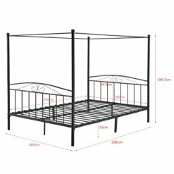 Las noches románticas ahora se pueden perfeccionar con esta cama con dosel. Disfrute de un sueño relajante proporcionado por el marco de cama estable de metal. Es ideal para amueblar el dormitorio o el cuarto de los niños.